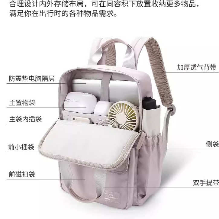 笔记本电脑双肩包女士2026新款大学生书包背包适用华为matebook14s苹果macbook联想华硕惠普出行简约大容量
