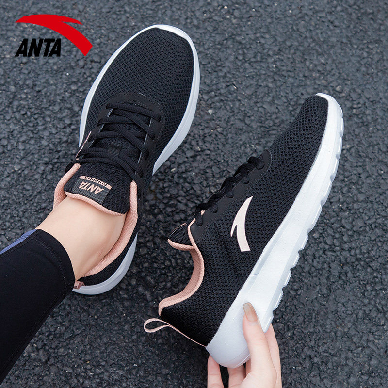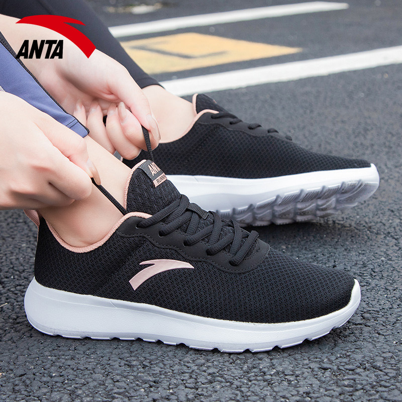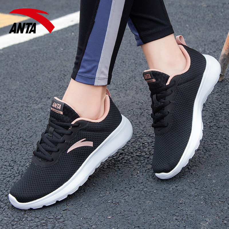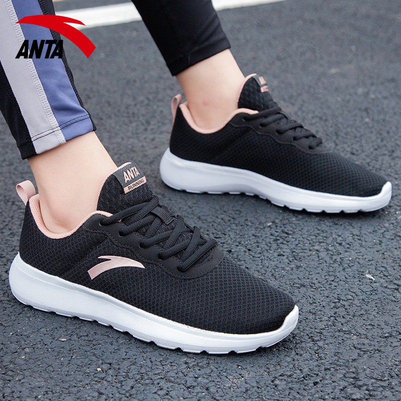安踏女款跑步鞋休闲健步透气软底妈妈鞋2026新款黑色网面运动鞋女