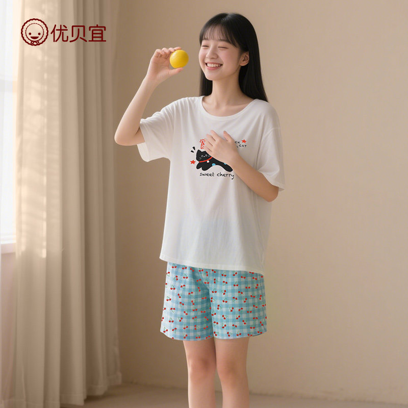 莫代尔青少年短袖套装女童2026新品童装家居服初高中学生女孩睡衣