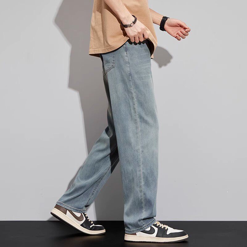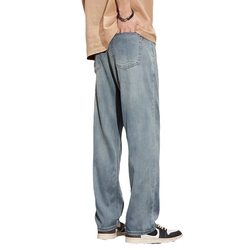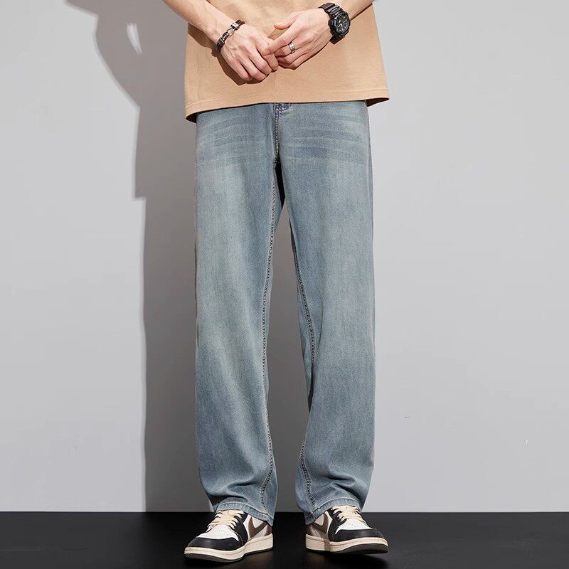 韩国潮牌天丝牛仔裤男夏季薄款宽松直筒2026新款潮牌冰丝垂感阔腿