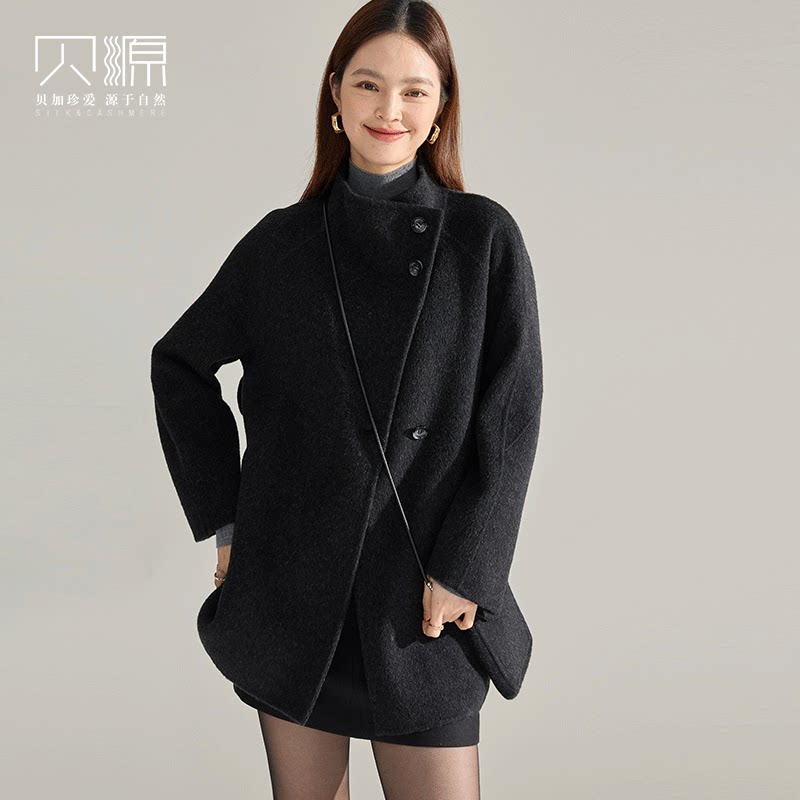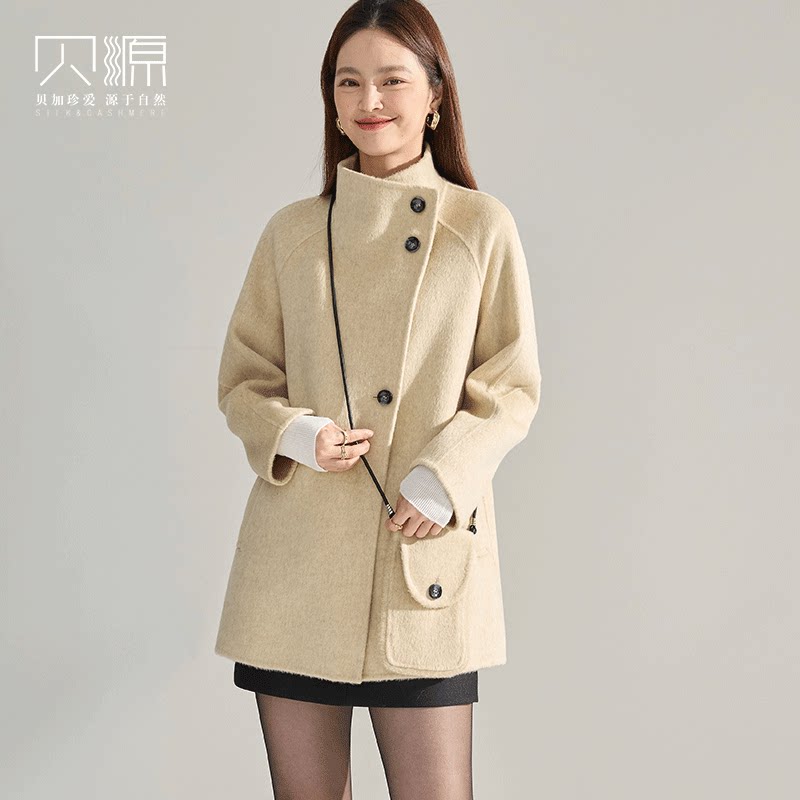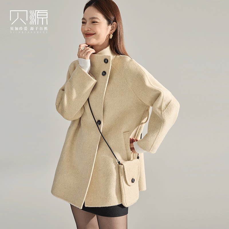 贝源复古立领双面呢羊绒大衣女2025新款小个子中长款羊毛毛呢外套