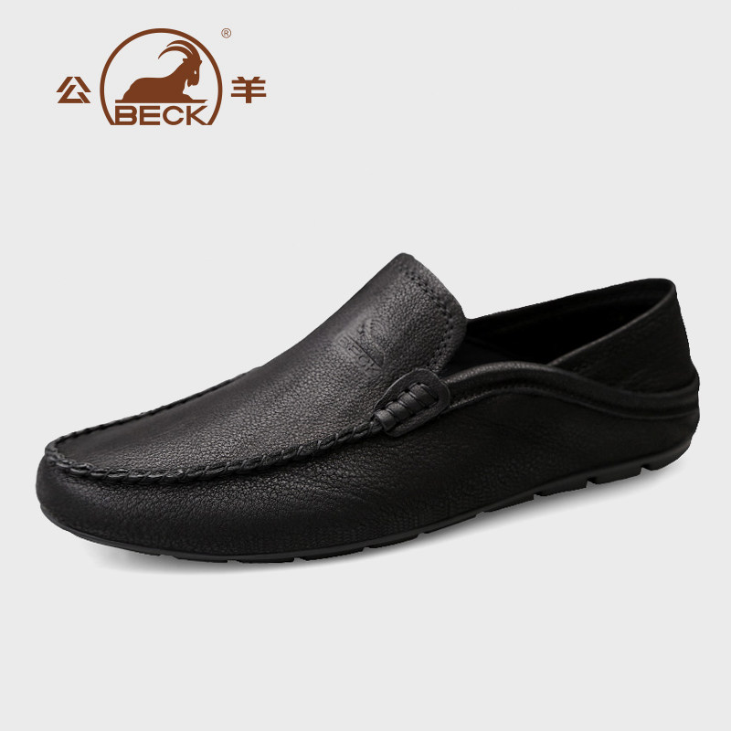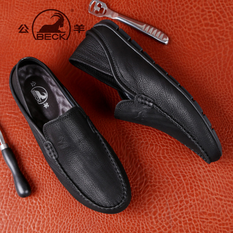 公羊豆豆鞋男真皮2026新款夏季男士休闲皮鞋男款软底一脚蹬懒人鞋