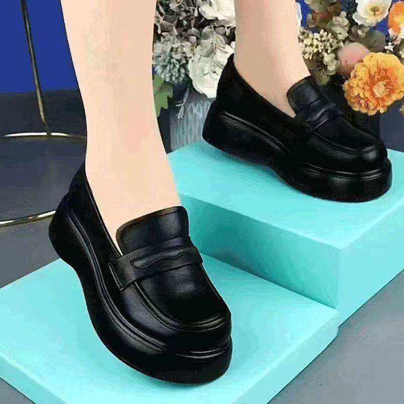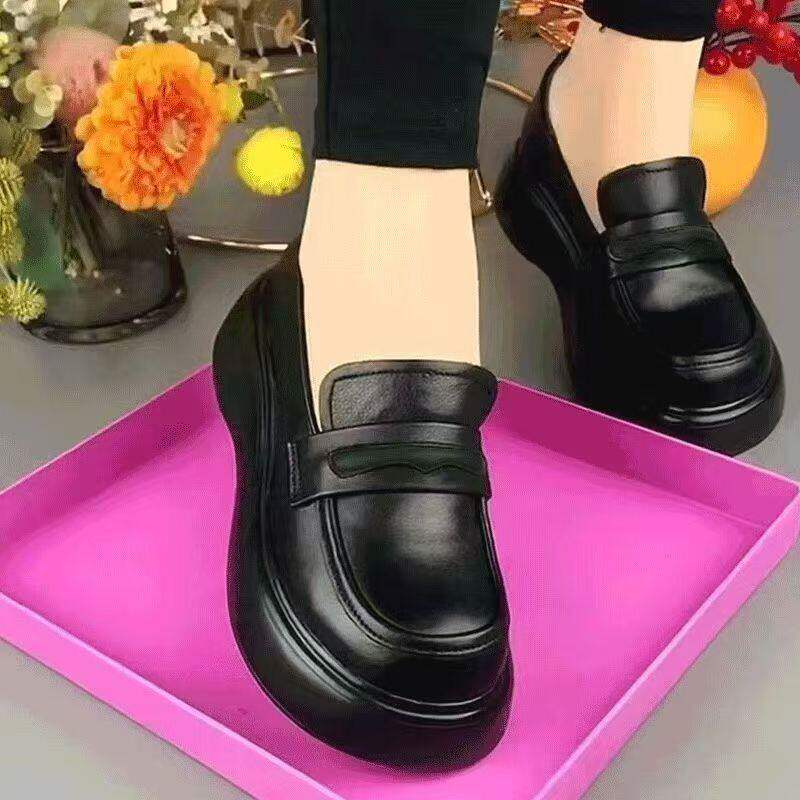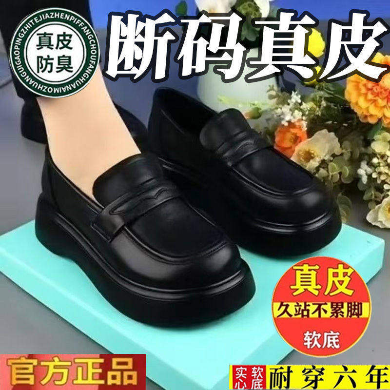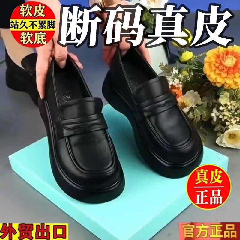 品牌断码真皮软底单鞋2026新款英伦一脚蹬妈妈皮鞋软皮厚底乐福鞋