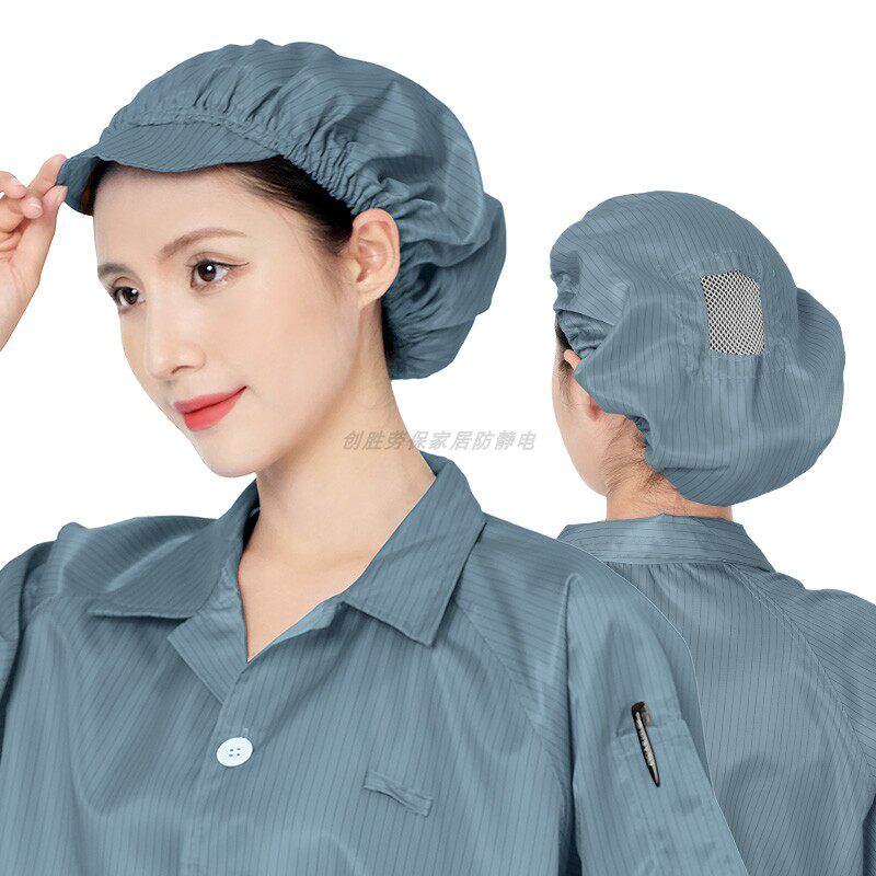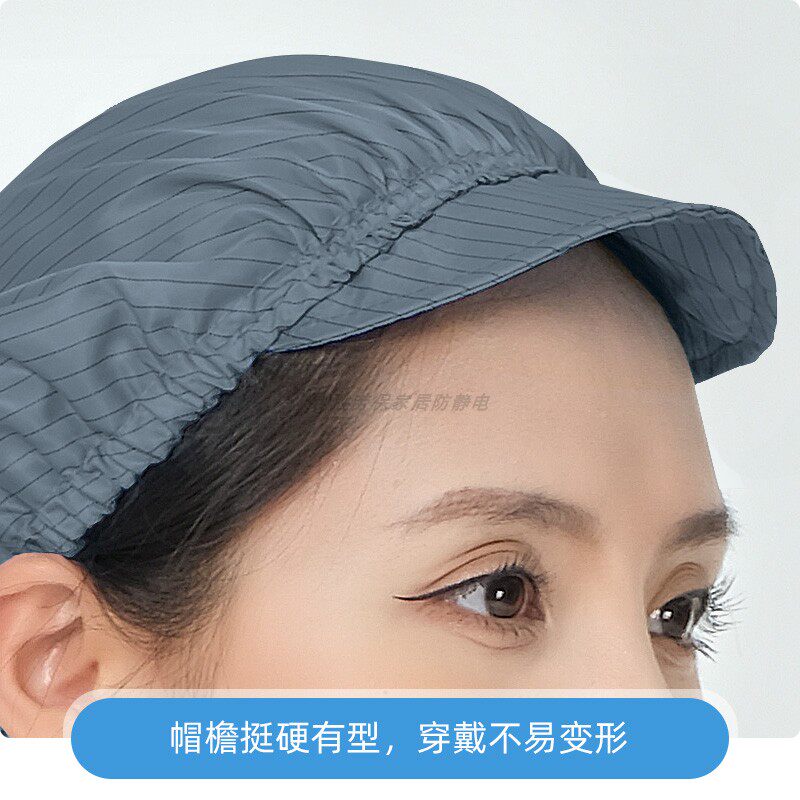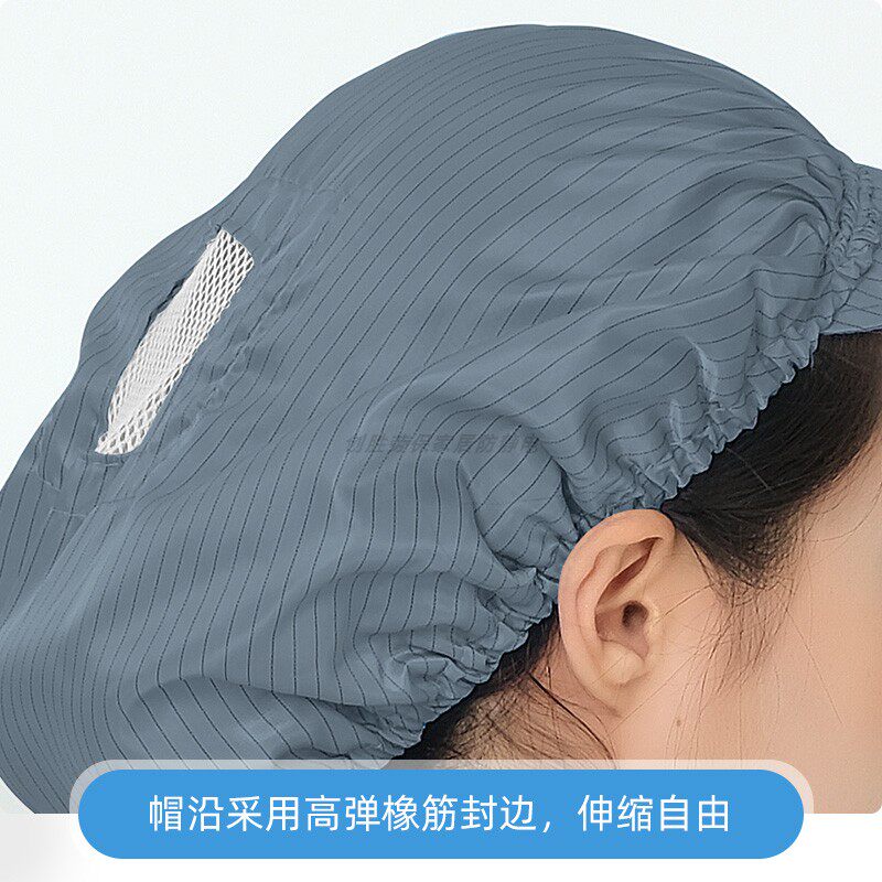 网孔透气防静电帽子灰色条纹防尘大工帽食品电子厂工作帽可印LOGO
