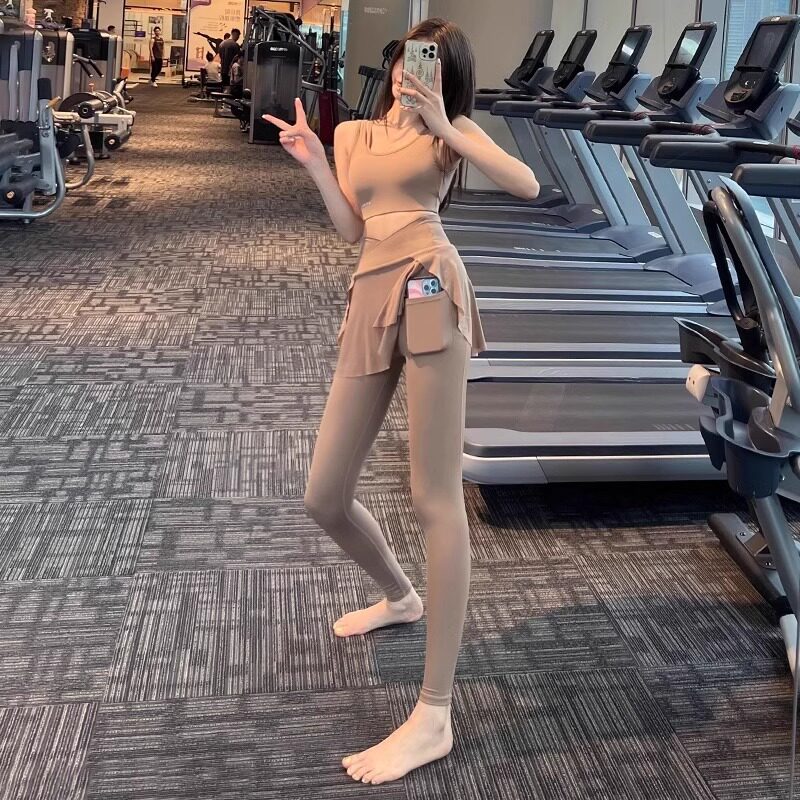 鲨鱼裤假两件运动裤女大码瑜伽裤遮挡裙外穿健身服女跑步裤瑜伽服