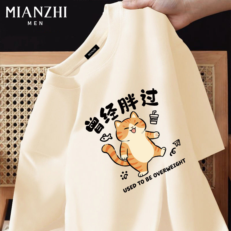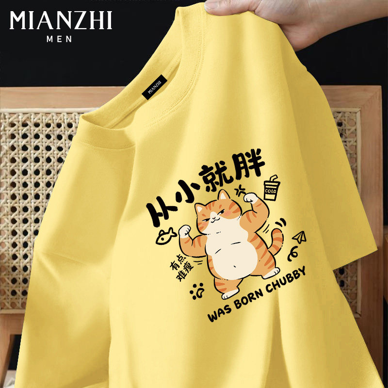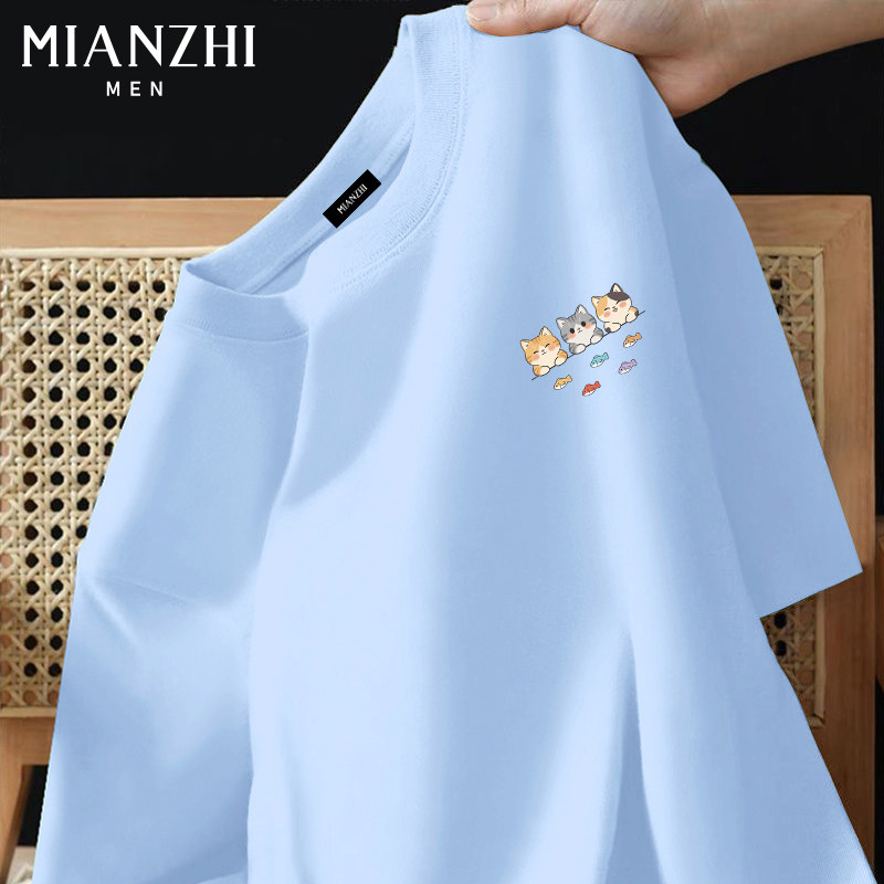 棉致枫叶国风小猫趣味短袖t恤男款纯棉2026新款夏季青少年运动服