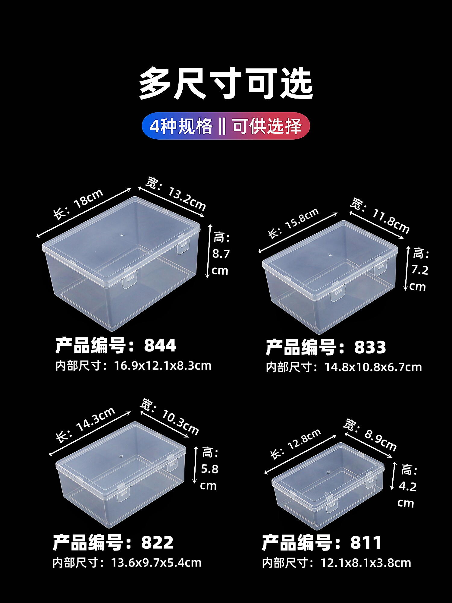 PP塑料盒长方形透明带盖收纳盒家居家用桌面整理盒工具零件配件盒