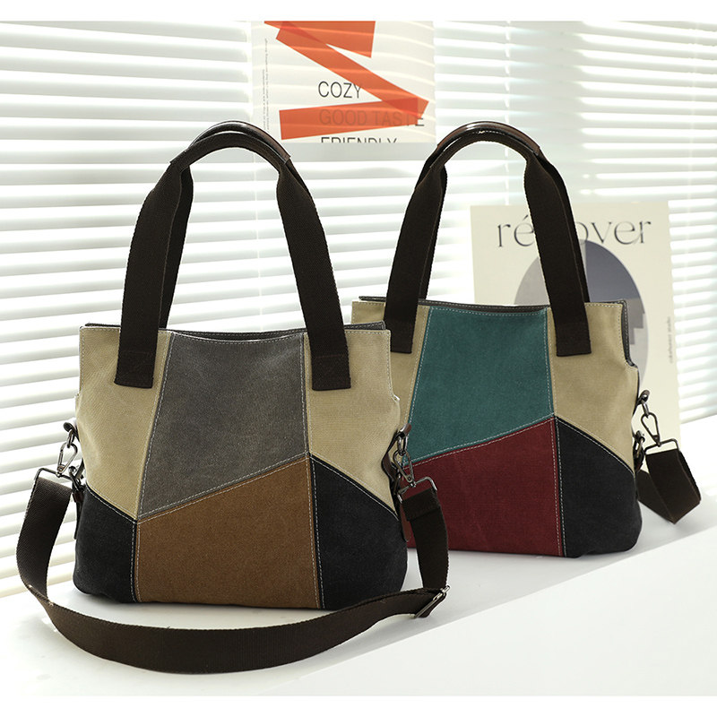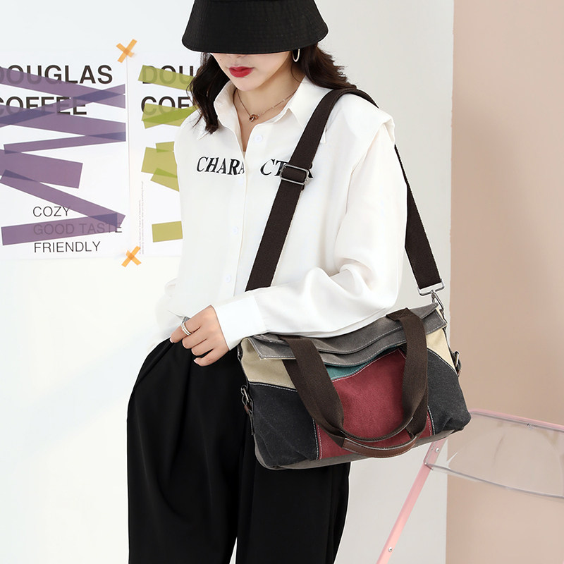通勤斜挎包女包包帆布手拎包2026新款高级感拼接大容量手提单肩包