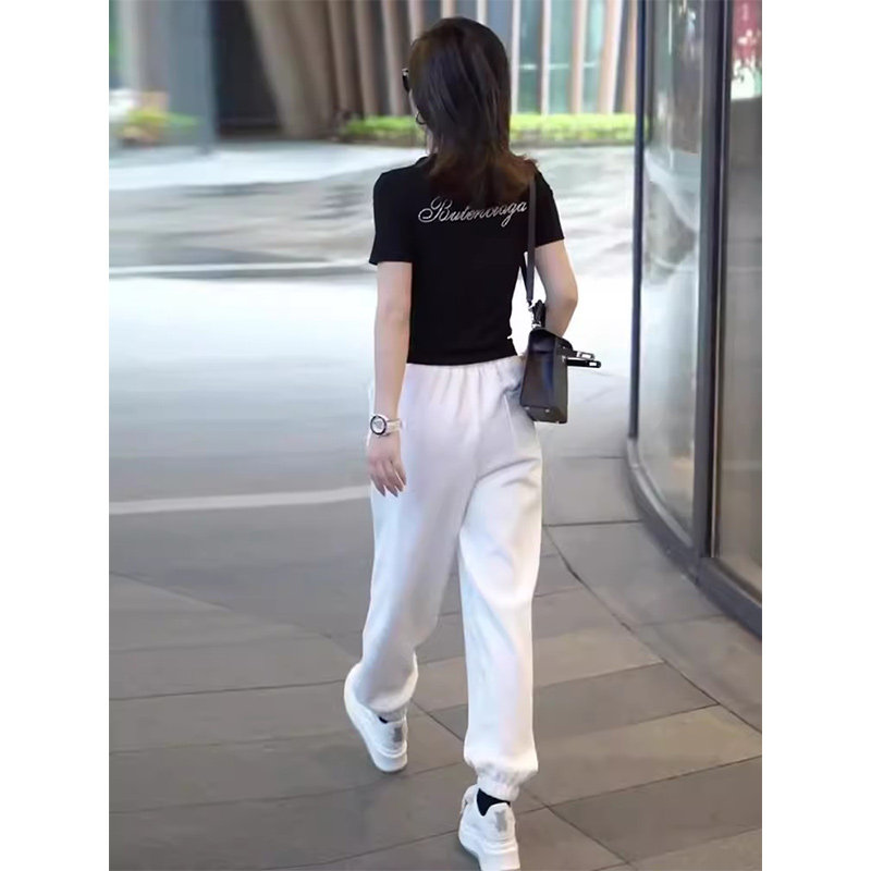 欧货简约休闲运动套装女夏季2026新款气质修身显瘦短袖T恤束脚裤