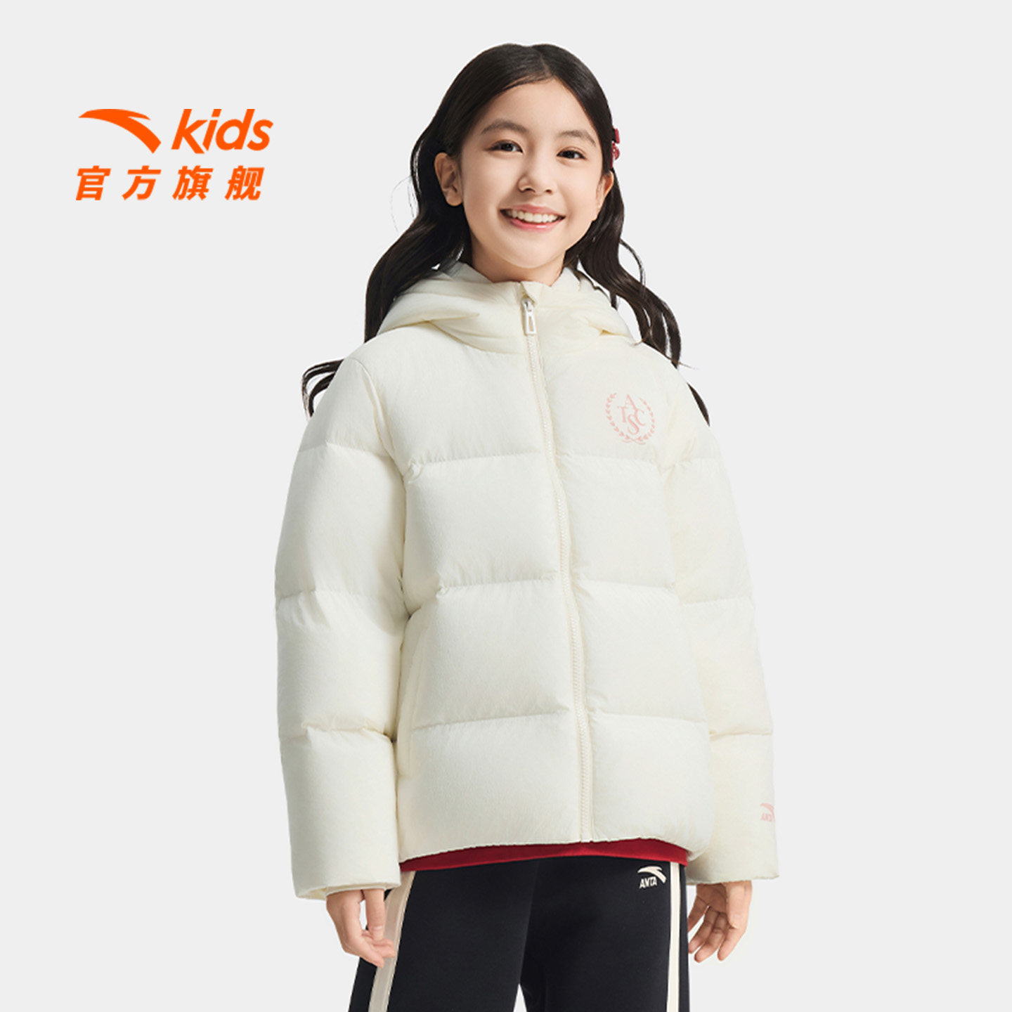 ATSC休闲系列安踏儿童女童羽绒服2025冬新款保暖防泼水连帽面包服