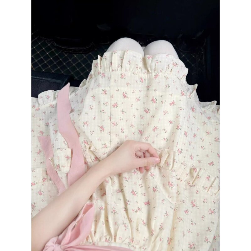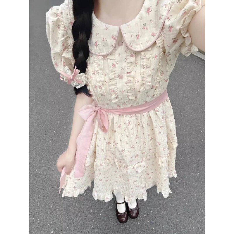 女大童碎花连衣裙夏季初中学生学院风甜美娃娃领小个子蛋糕蓬蓬裙