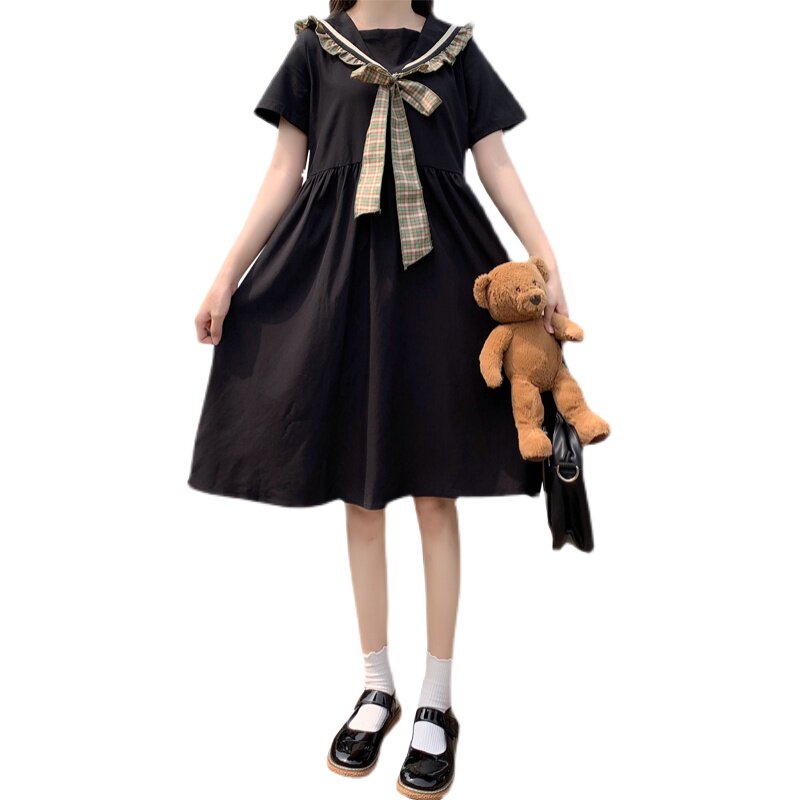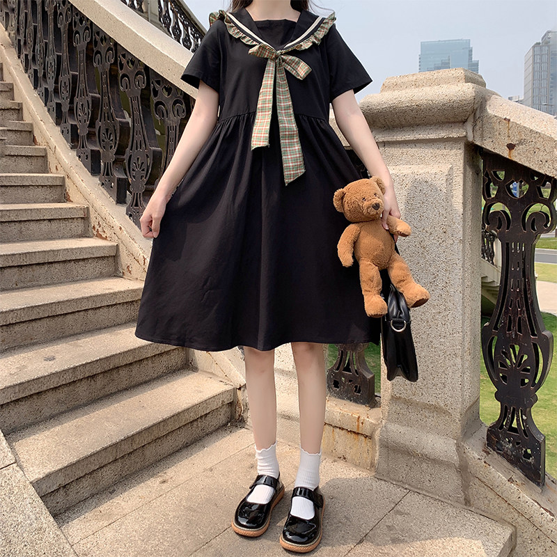 女大童连衣裙夏装胖女孩加大码宽松洋气公主裙初中生学院风长裙子