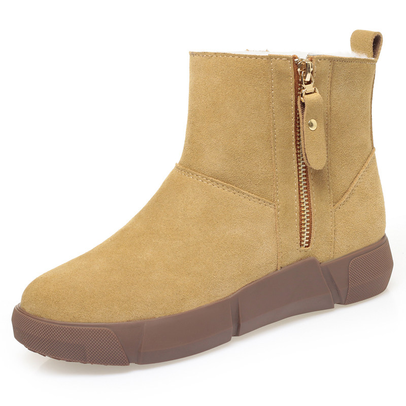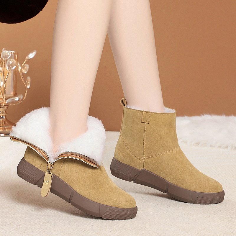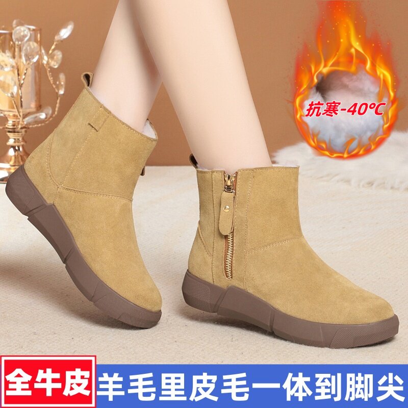 皮毛一体雪地靴女款冬季加绒加厚靴子防滑真皮羊毛短靴东北大棉鞋