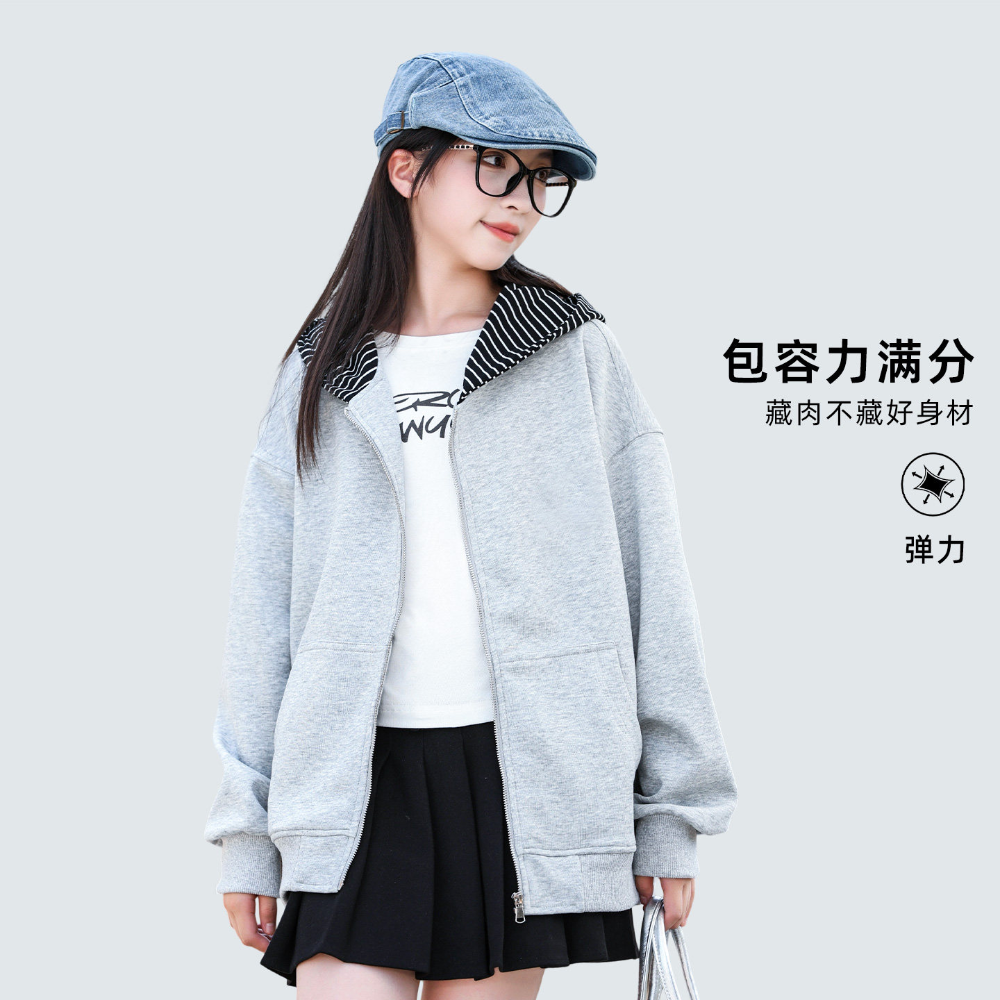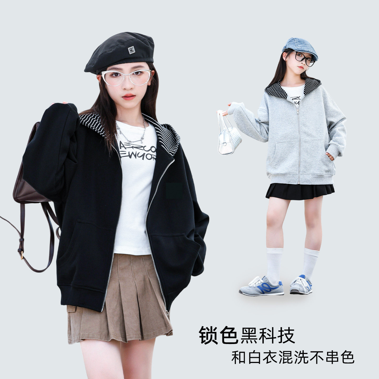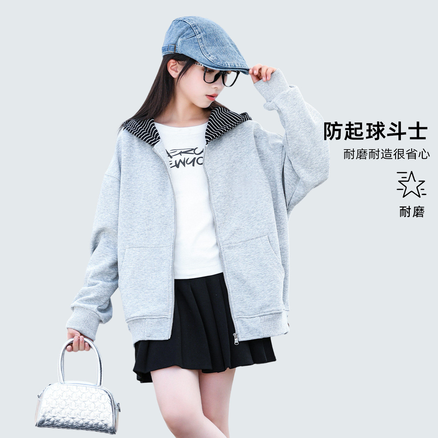 女大童连帽薄款外套春秋2025新款初中生女孩开衫休闲潮流卫衣上衣