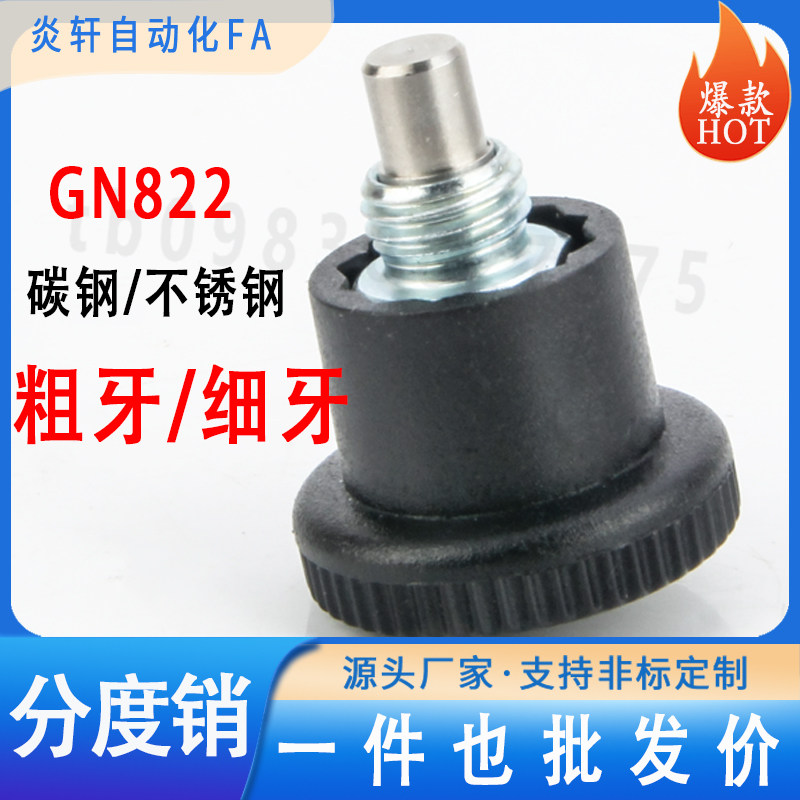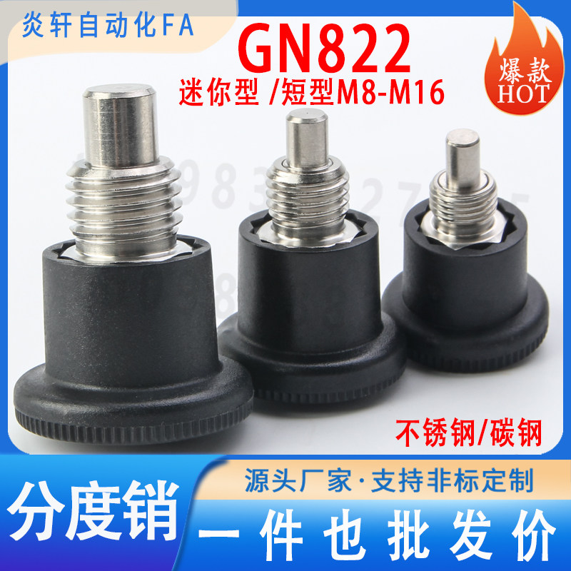 GN822迷你型分度销碳钢不锈钢粗细牙M8M10M12M16自锁复位旋钮柱塞