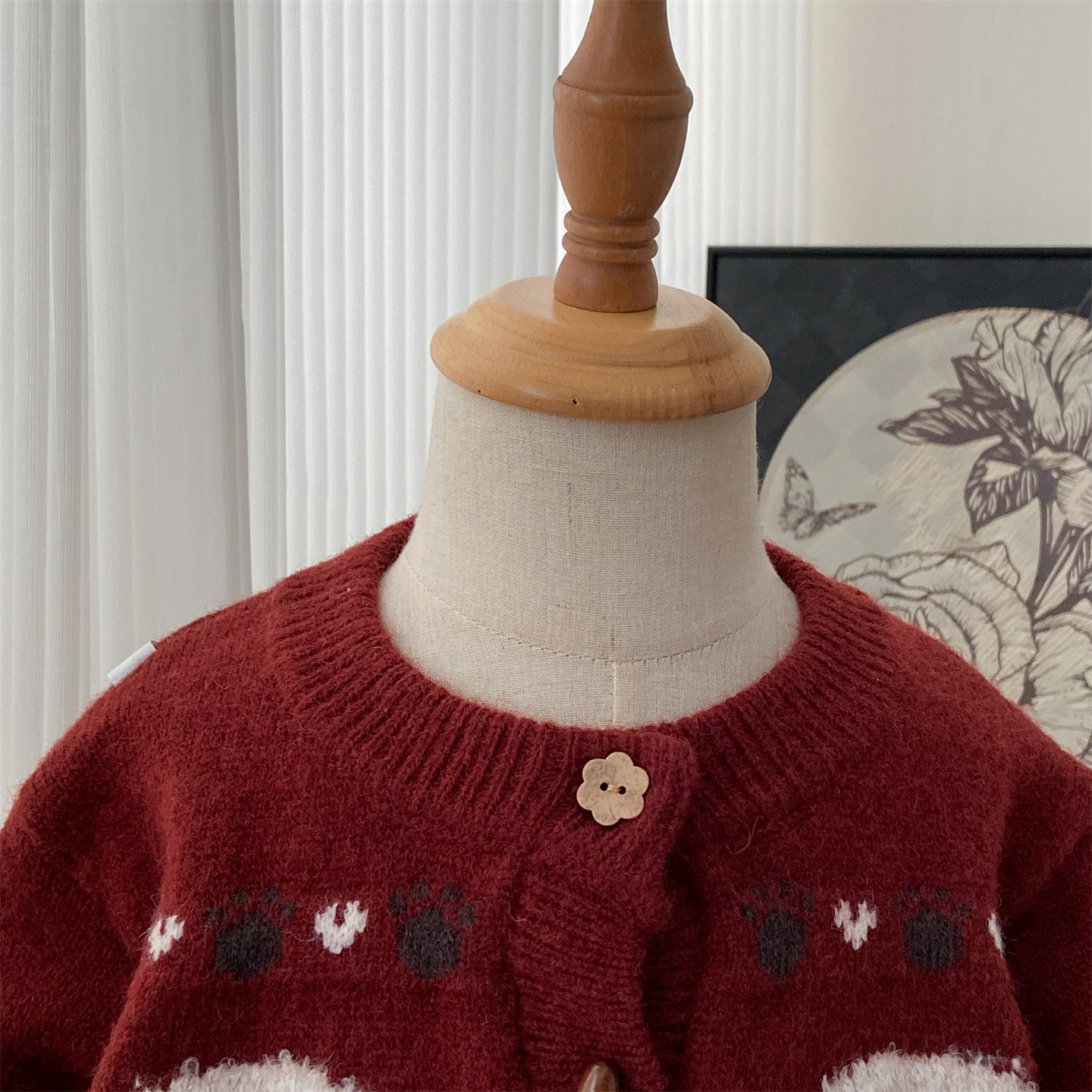 女童毛衣开衫2026新款女宝宝春季洋气小狗红色上衣圆领针织衫外套
