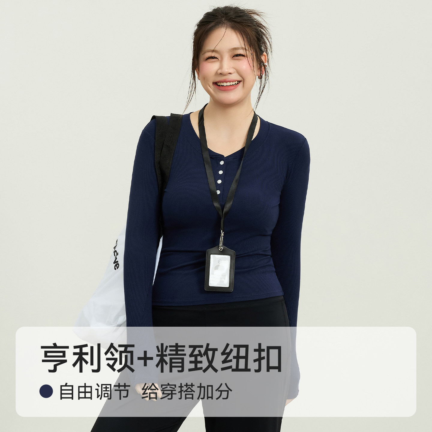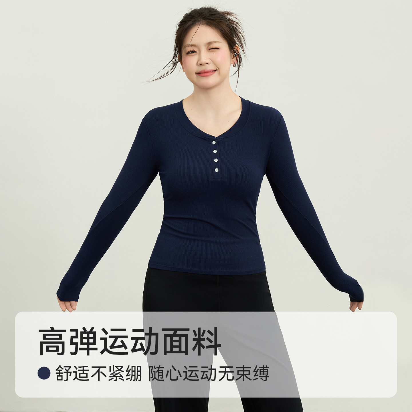 大码运动长袖T恤女胖mm修身显瘦瑜伽服跑步训练亨利领健身上衣