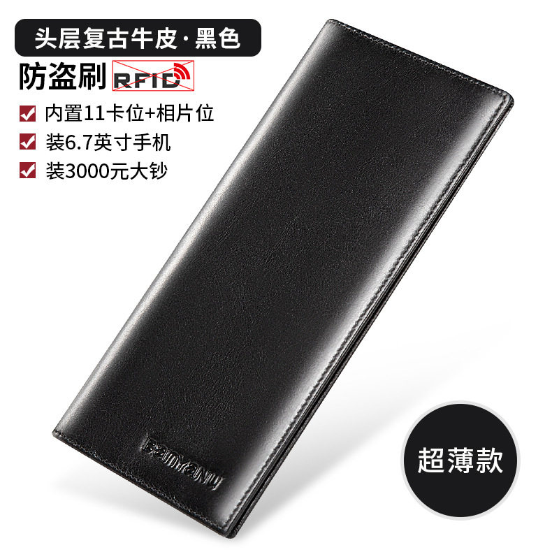 头层牛皮钱包2025年商务男长款真皮防盗刷皮夹简约带拉链钱夹潮