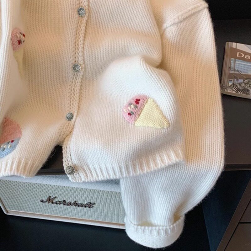 女童刺绣加厚毛衣冬季新款2025中大童洋气时髦超好看针织短款开衫
