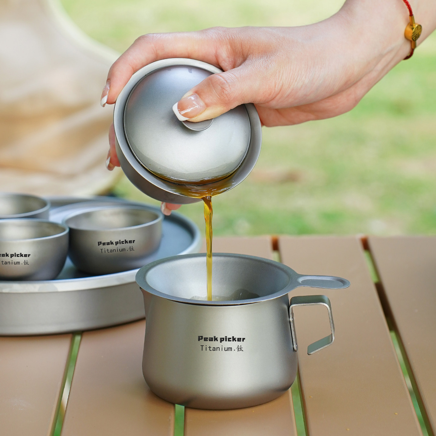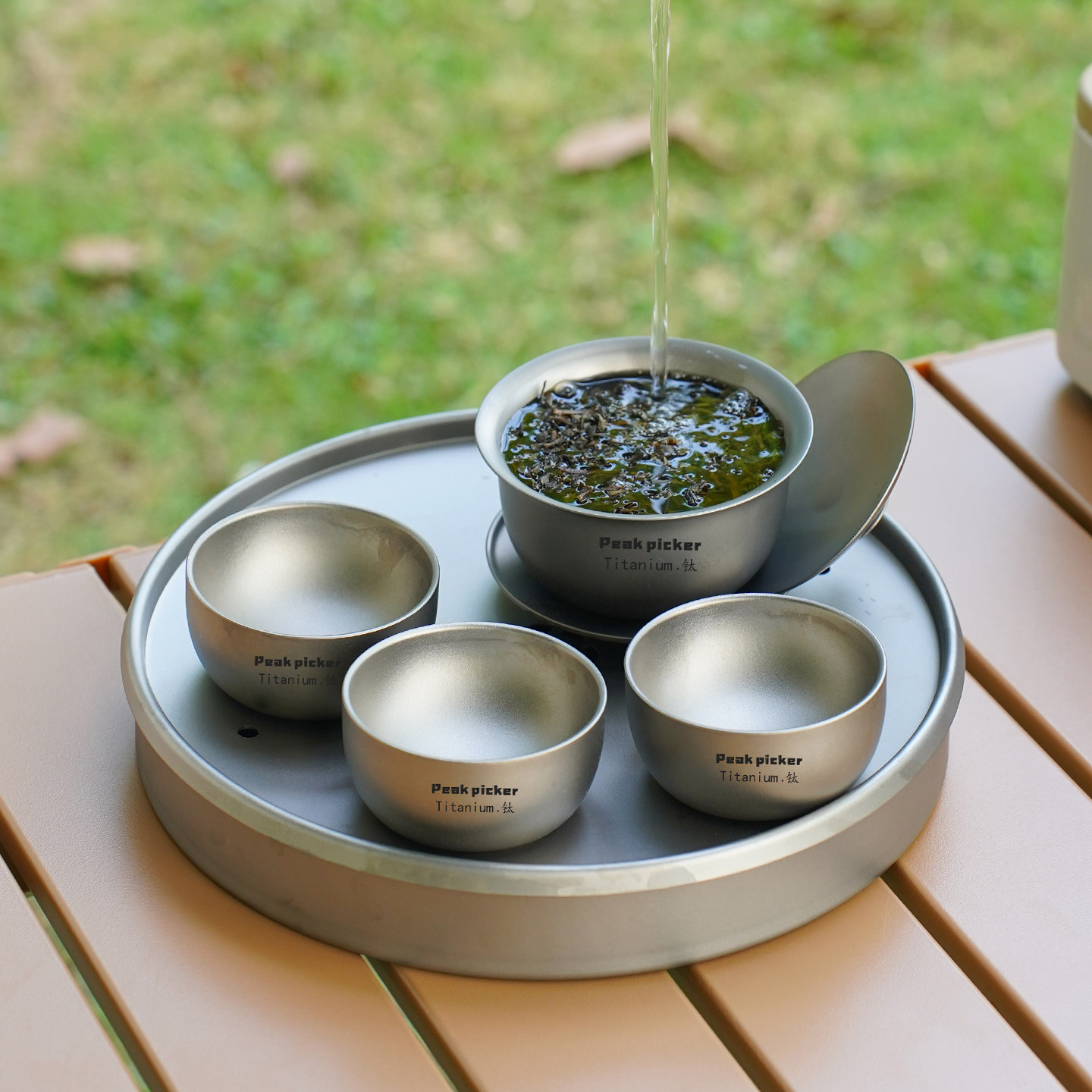 纯钛盖碗茶具套装旅行便携式功夫茶具三才盖碗户外喝茶双层钛茶具