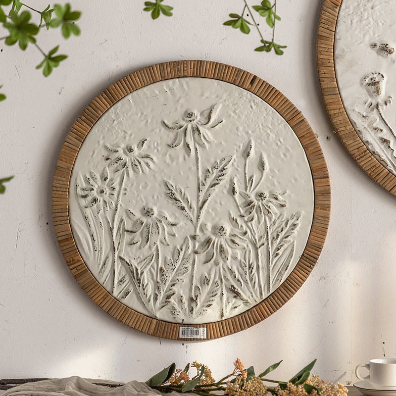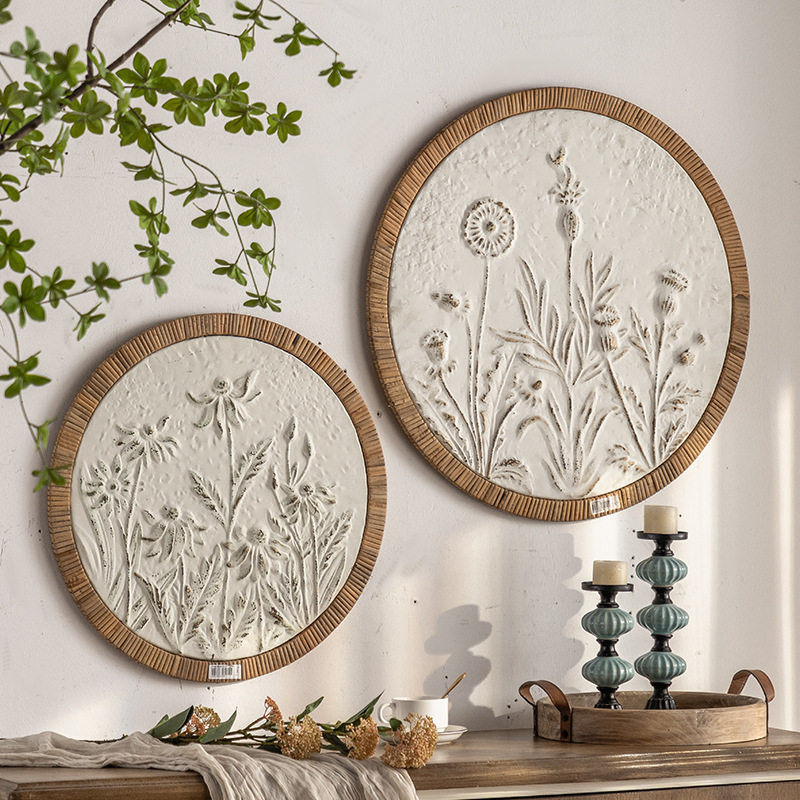 复古客厅壁饰餐厅背景墙浮雕立体圆形铁艺壁挂复古高级感墙面挂饰