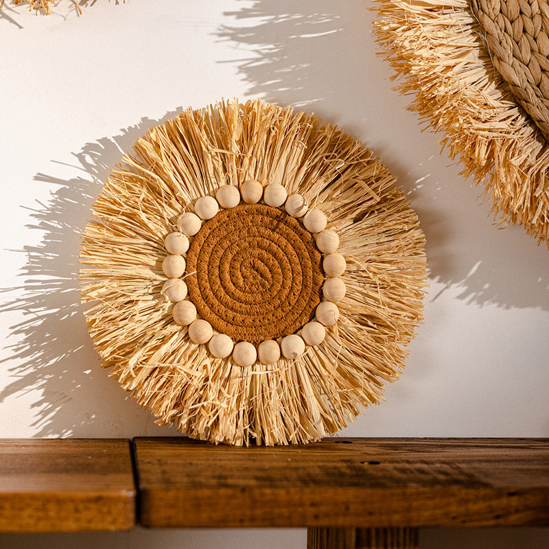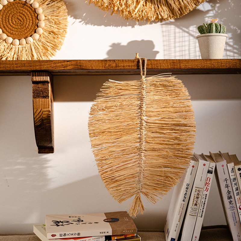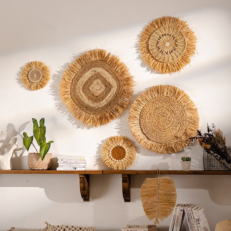 墙面装饰高级感天然草编拉菲草创意餐厅卧室客厅背景墙饰民宿挂饰