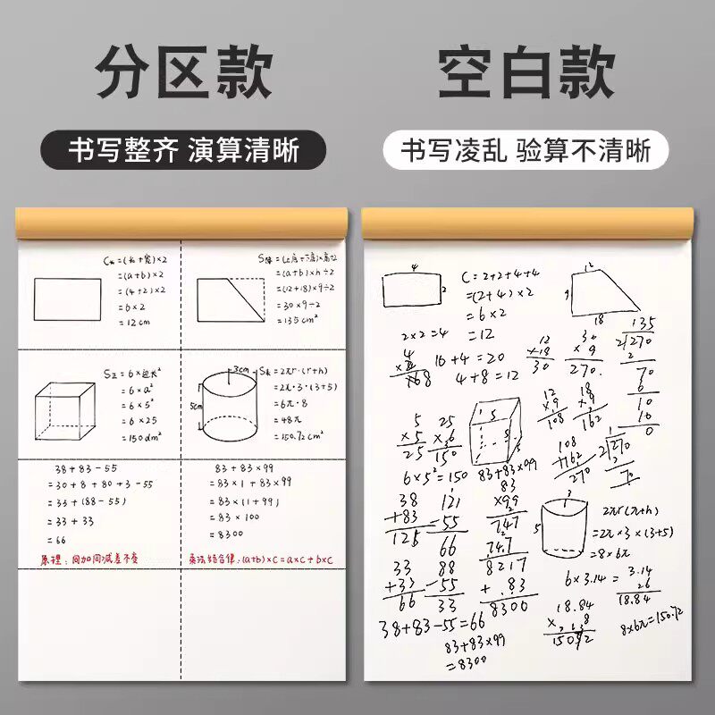 初中生草稿本分区可撕小学生考研专用草稿纸空白纸张加厚演草纸本子牛皮用数学运算演算练习验算批发计算做题