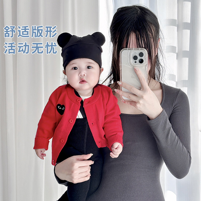 2024婴儿毛衣春季开衫春装女男小童红色早春小月龄宝宝春秋款