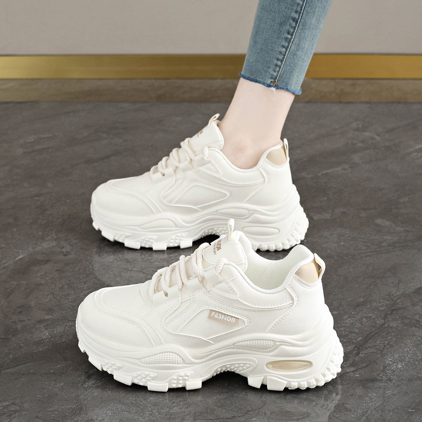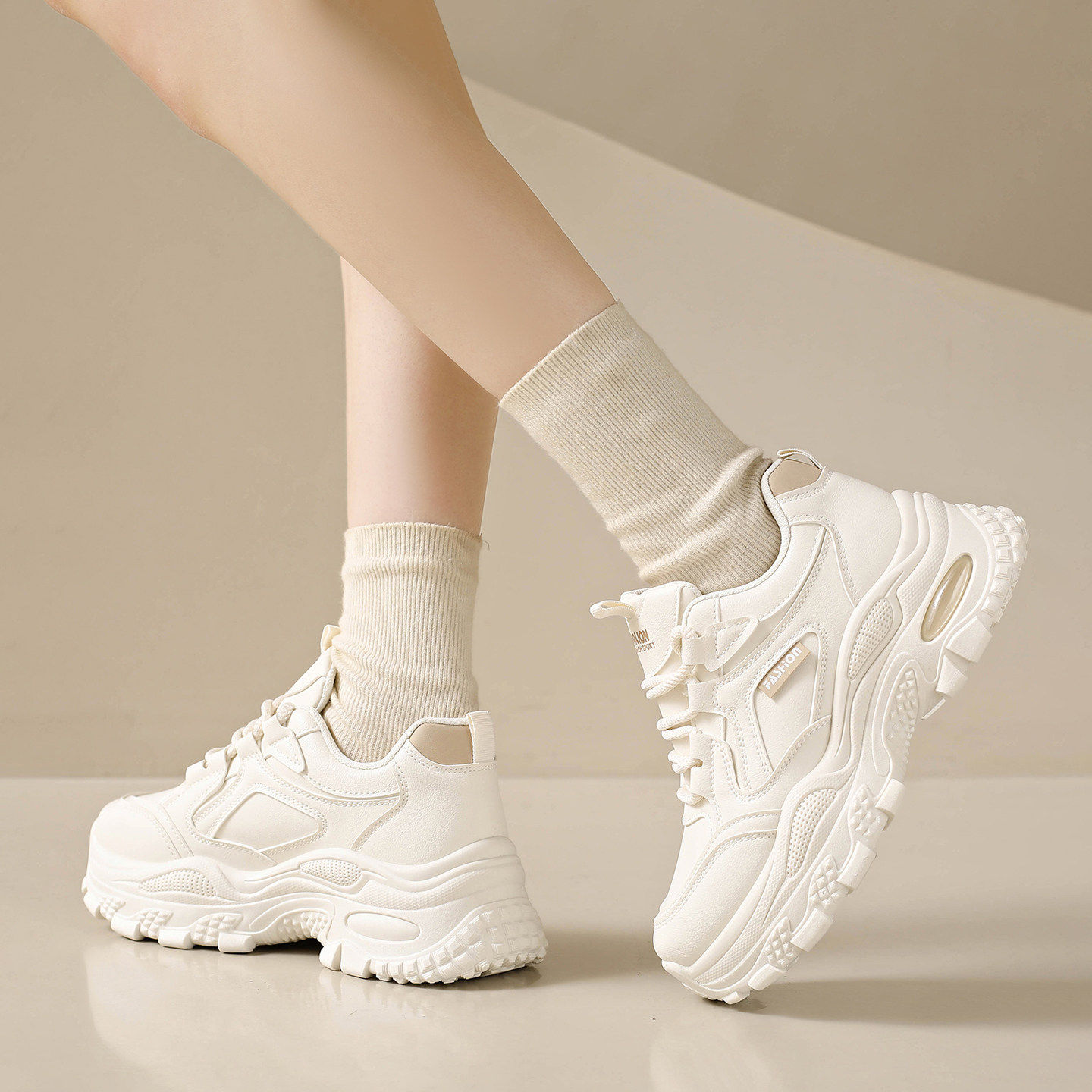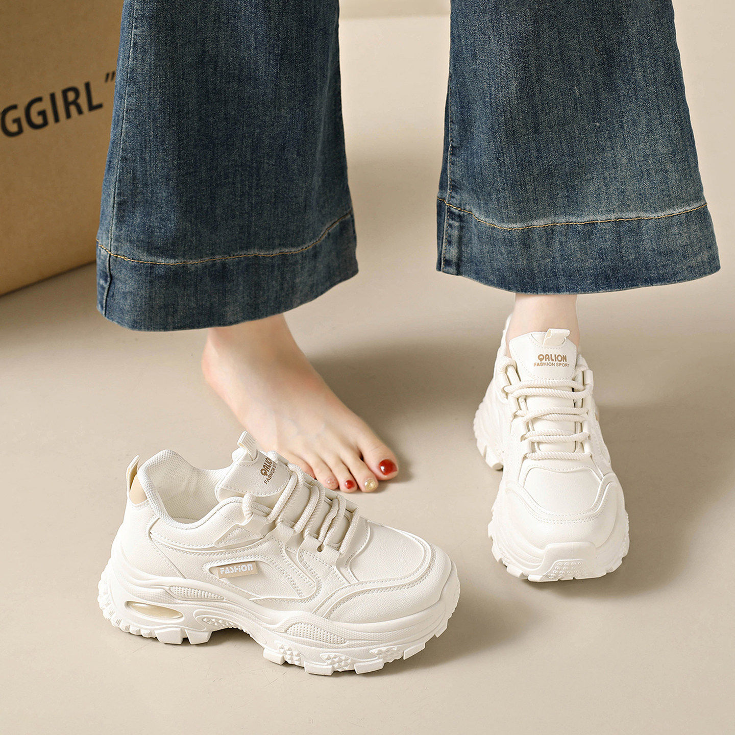 热风新女鞋春季老爹鞋显脚小增高轻便运动鞋小白鞋超轻软底百网面