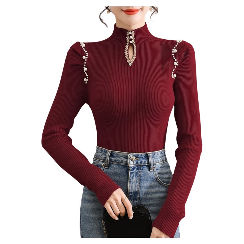 黑色毛衣女款2026新款冬季修身高级针织衫内搭女钉珠气质打底上衣