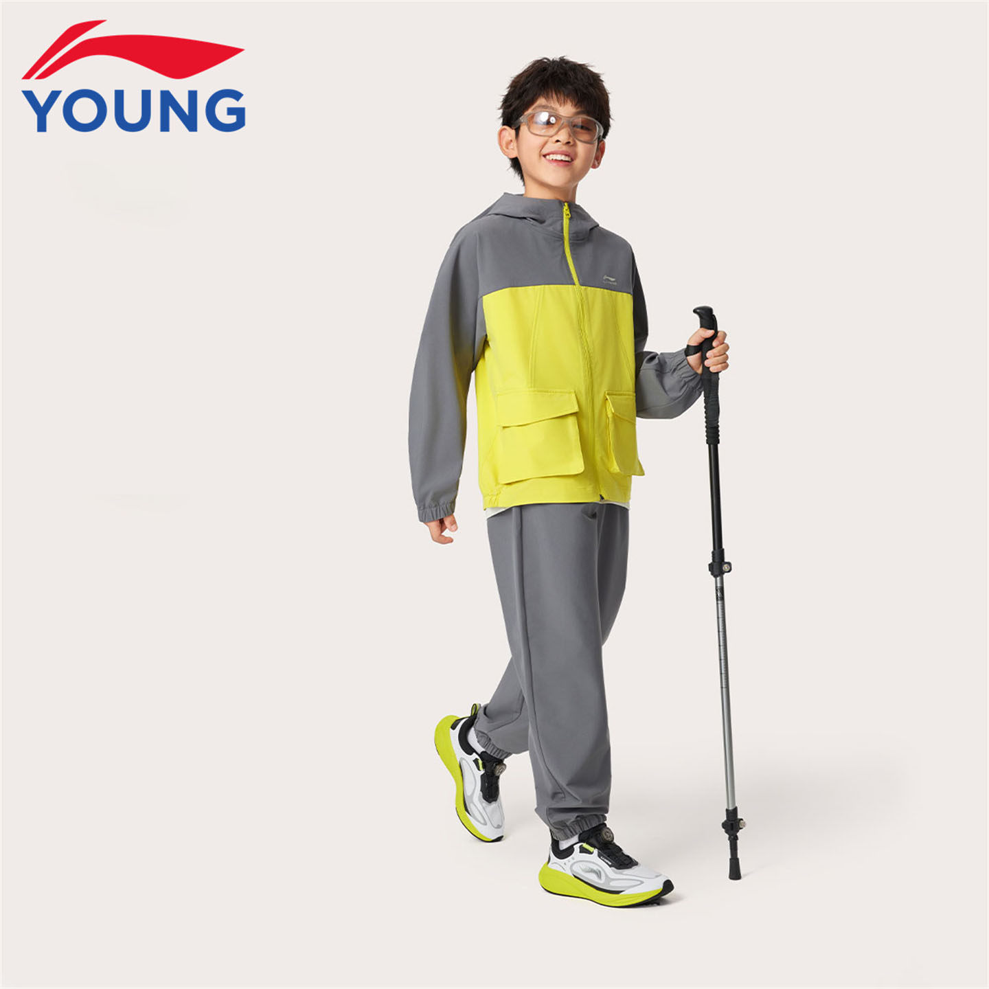 李宁儿童运动套装男童户外连帽撞色外套2026春季新款青少年长裤子