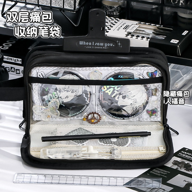 痛包笔袋透明简约大容量2025新款二次元可放吧唧小卡高颜值文具盒小学生女初中女孩款设计感收纳铅笔盒文具袋