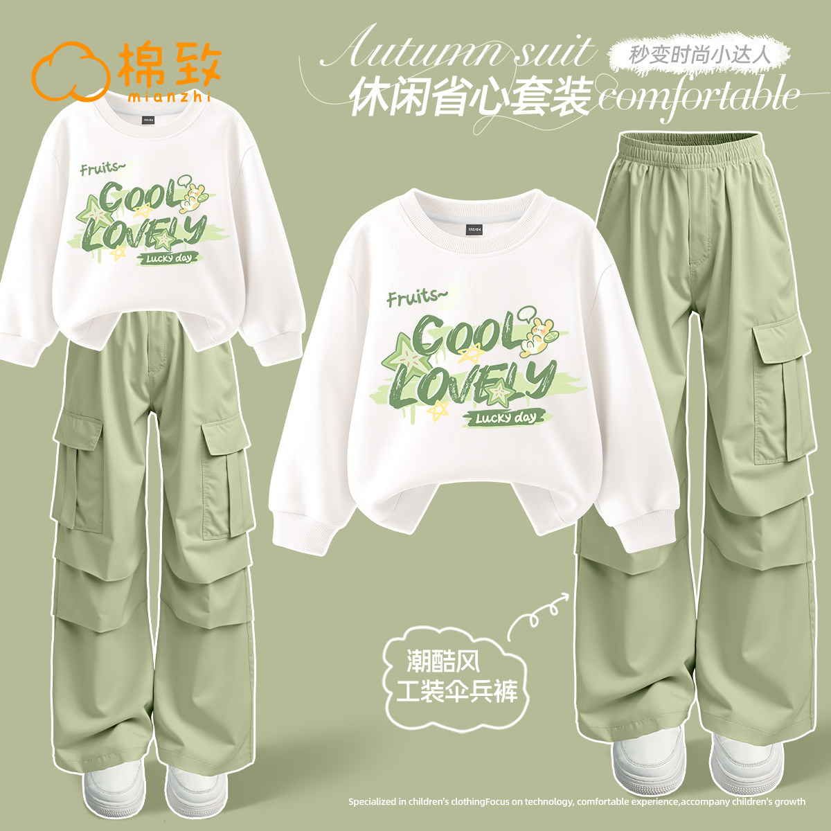 棉致女童春装套装2026新款春秋运动衣服女大童工装裤春季儿童卫衣