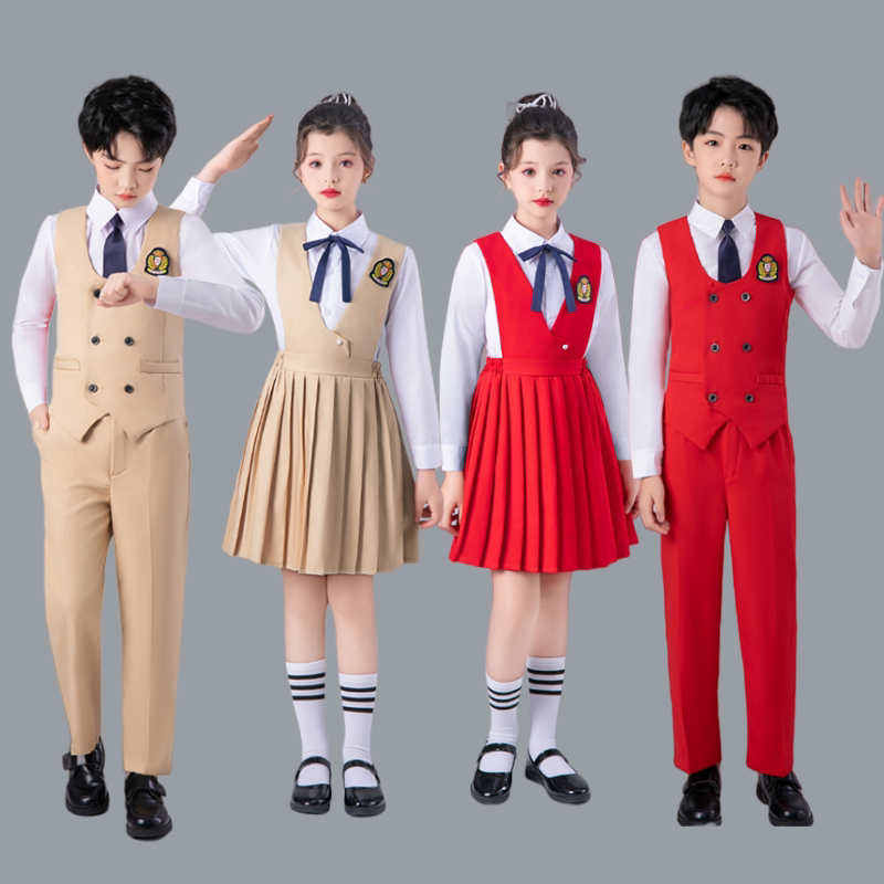 儿童中小学生学院风六一大合唱服男女童红色爱国朗诵比赛演出服春