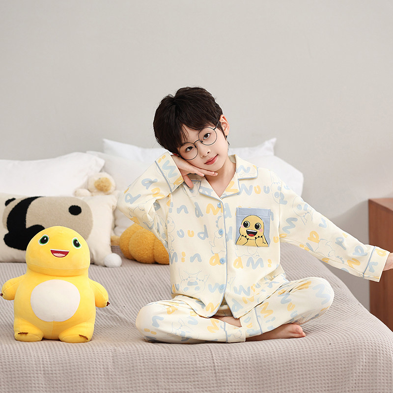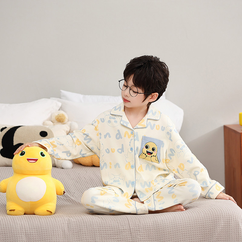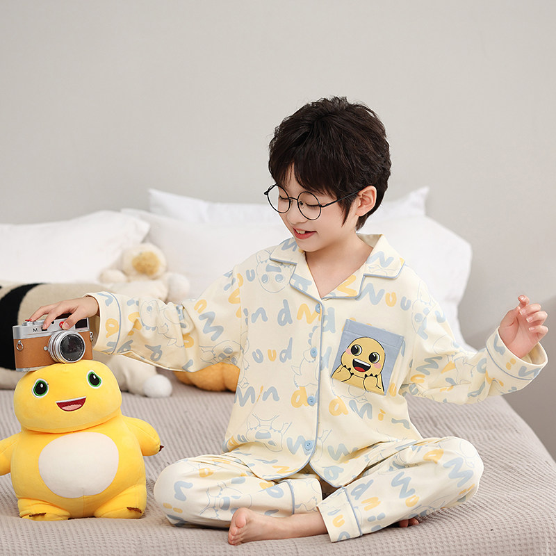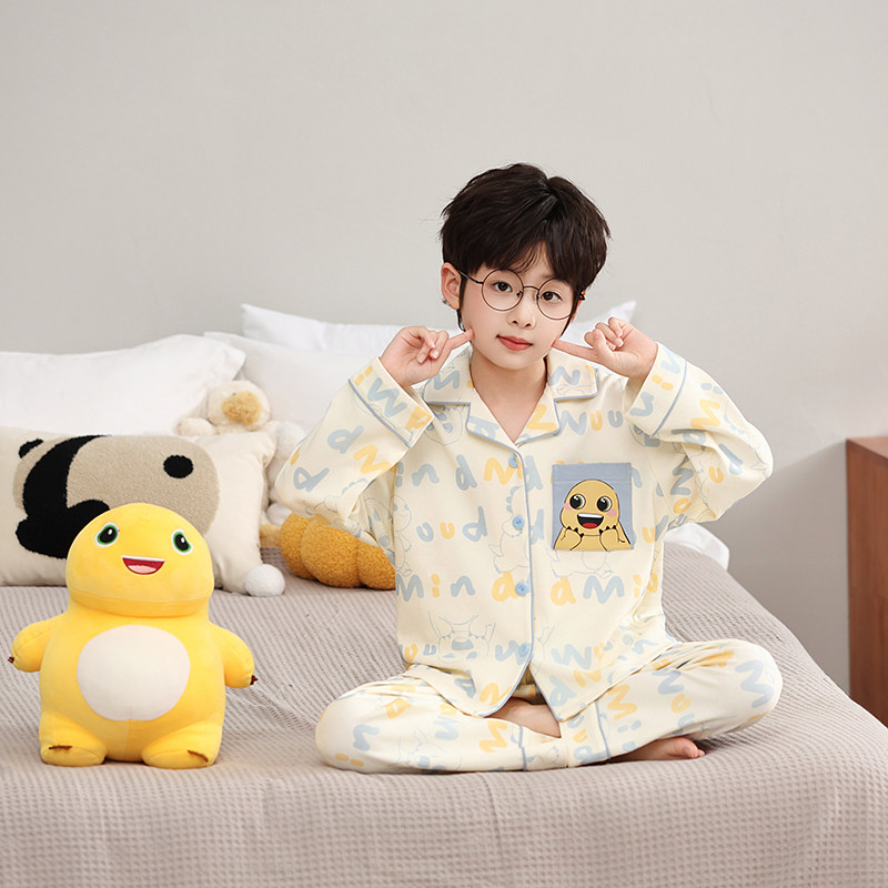 男童秋冬季睡衣2026新款儿童男孩纯棉家居服青少年初中生长袖套装