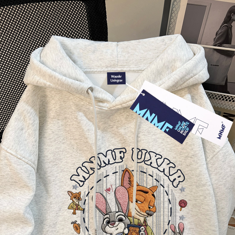 卡通疯狂动物城连帽卫衣男女童加绒加厚中大童秋冬装仿刺绣上衣服
