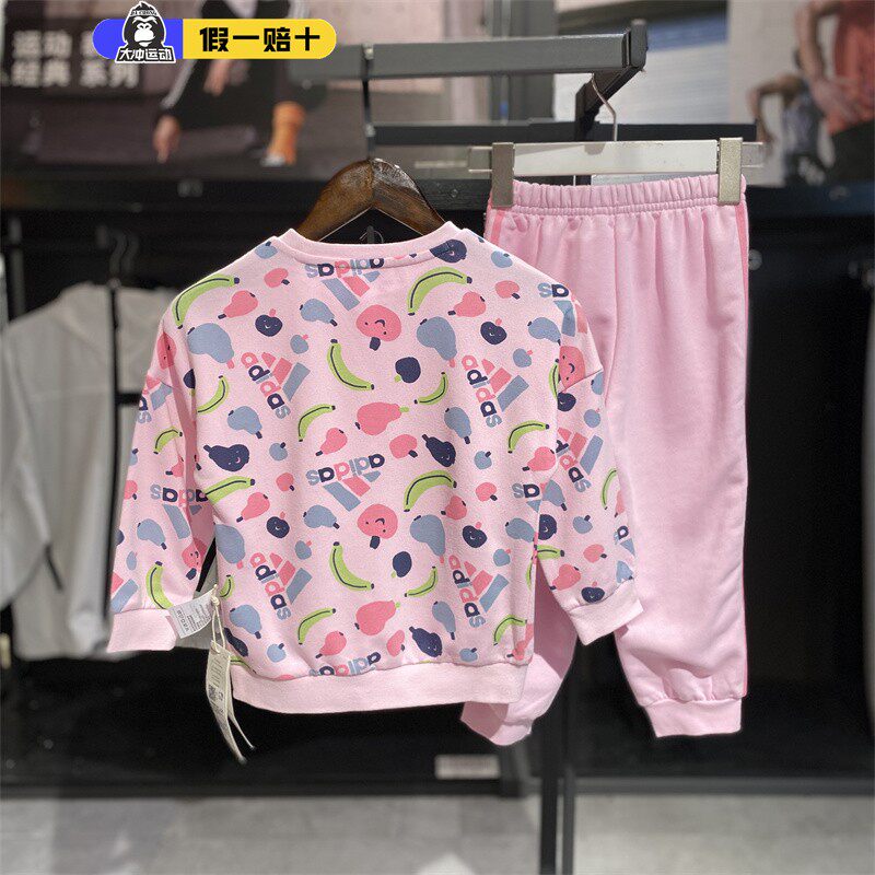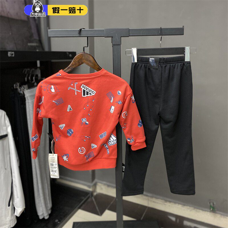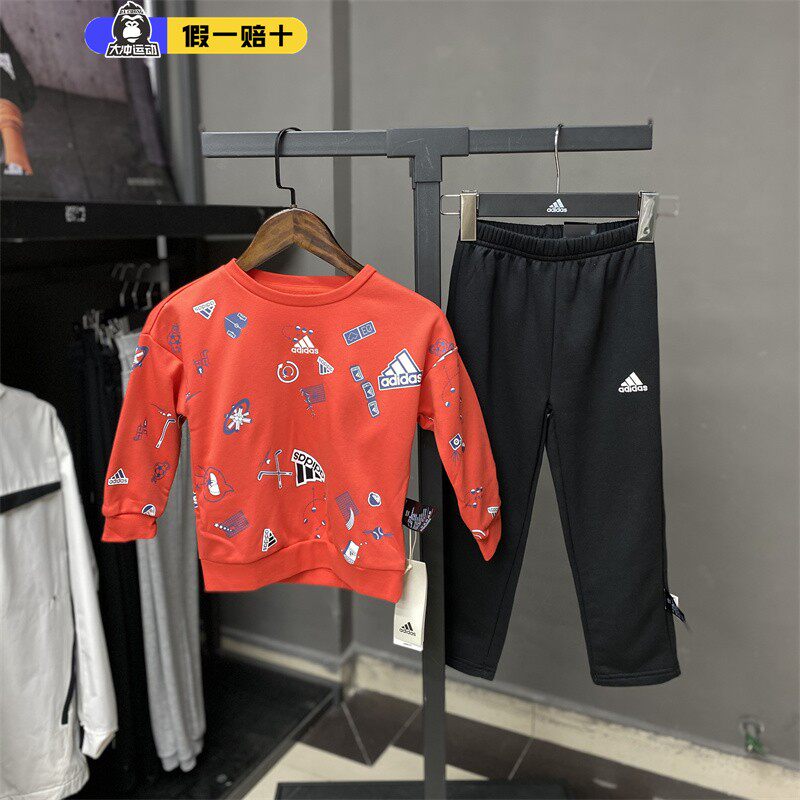 阿迪达斯套装童装男女2025新款针织运动卫衣长袖裤子两件套IS3766