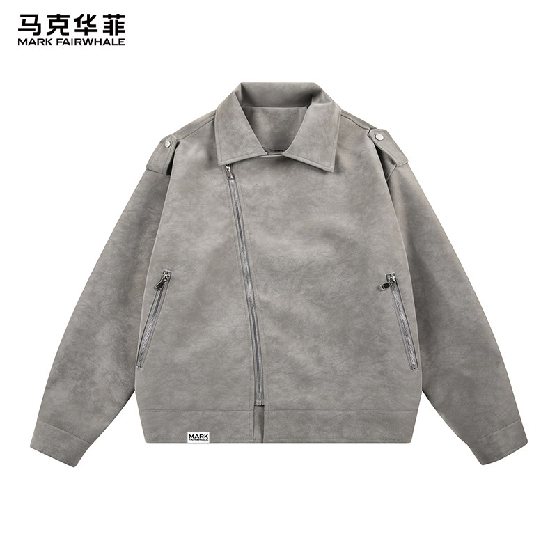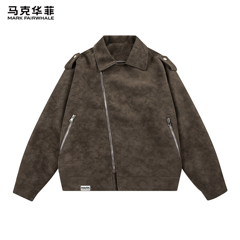 马克华菲翻领外套男款春季美式复古皮衣男士2026新款休闲上衣外套