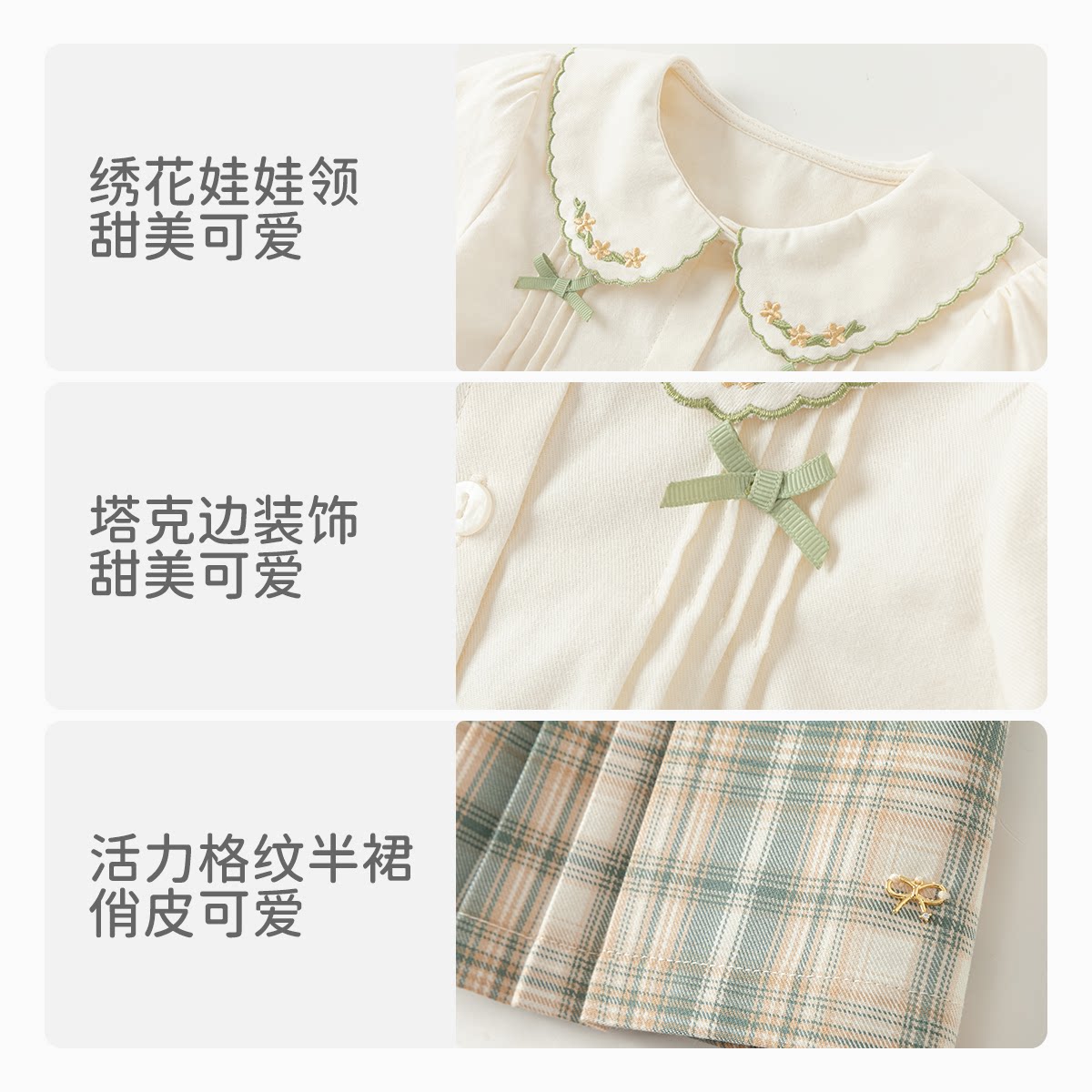 戴维贝拉女童半裙套装2026春装中大童百褶裙长袖衬衫学院风两件套