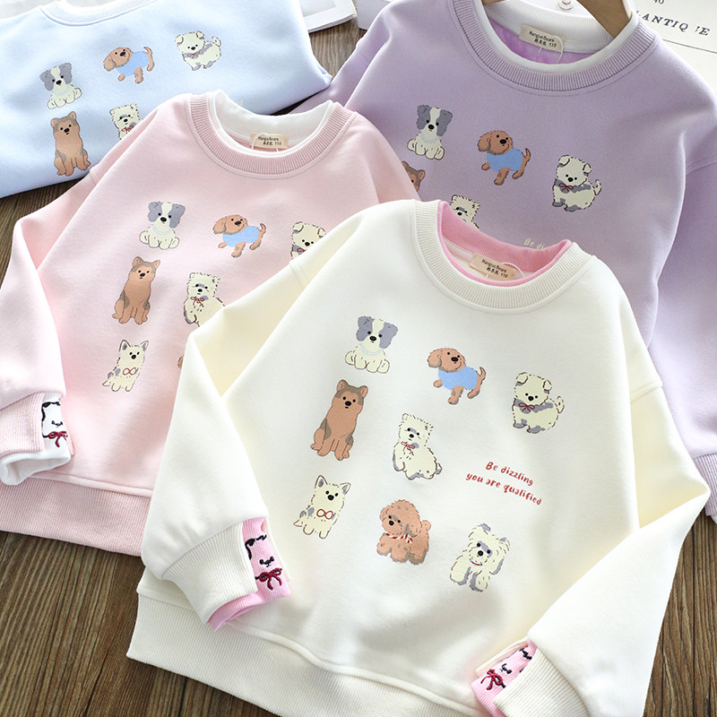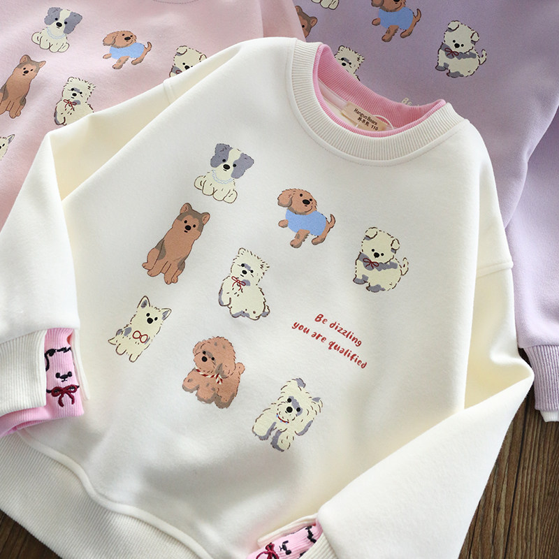 女童春装卫衣2026新款洋气童装儿童纯色印花圆领上衣春秋款百搭潮