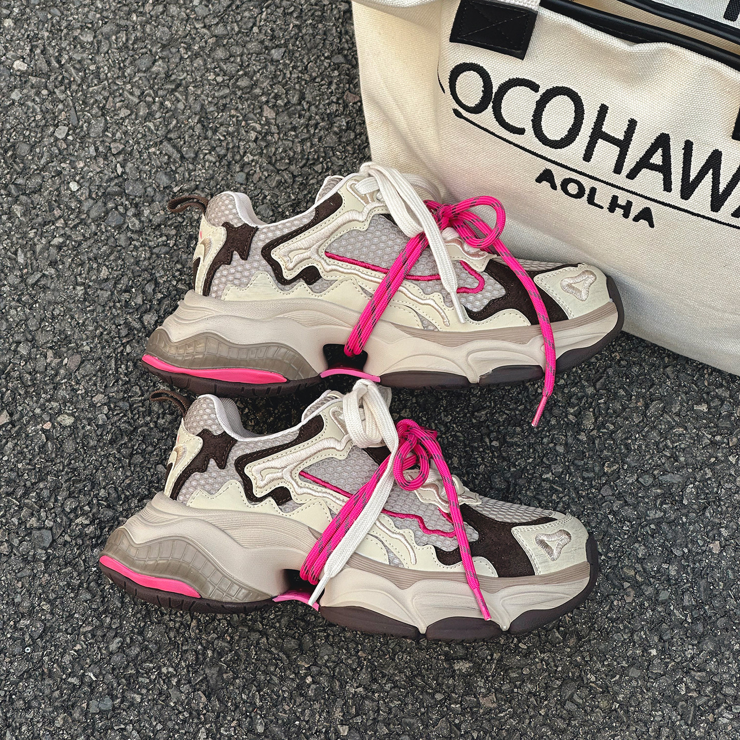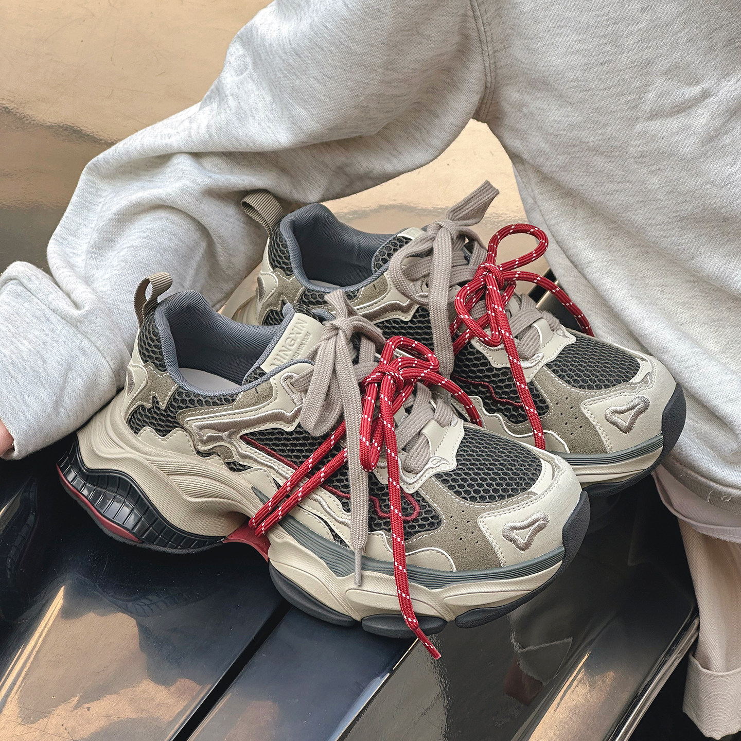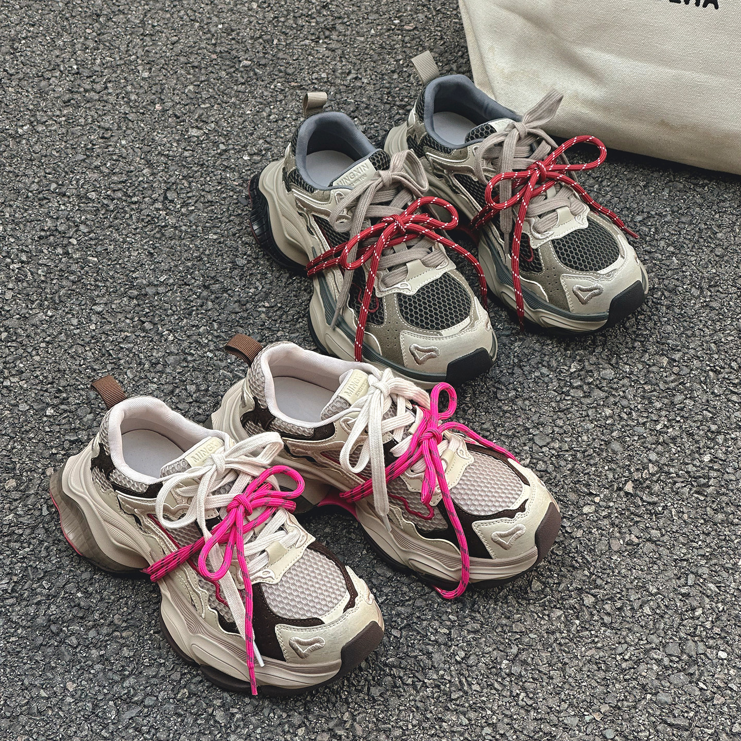 真皮厚底老爹鞋女2026新款时尚百搭春款女鞋显脚小增高运动休闲鞋