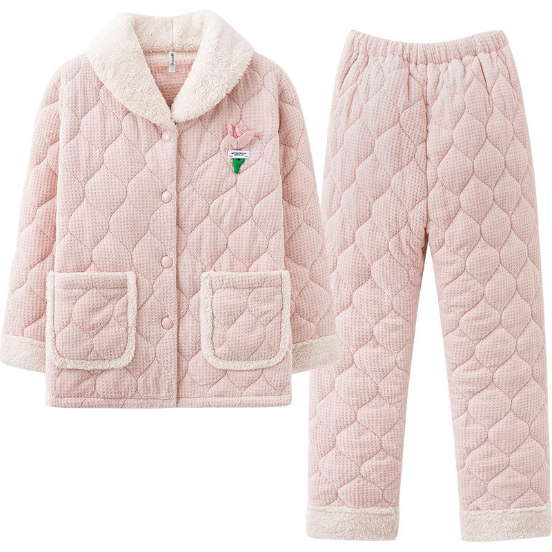 311线报网描述:速暖牛奶绒夹棉 三层超厚 可爱小粉花朵套装