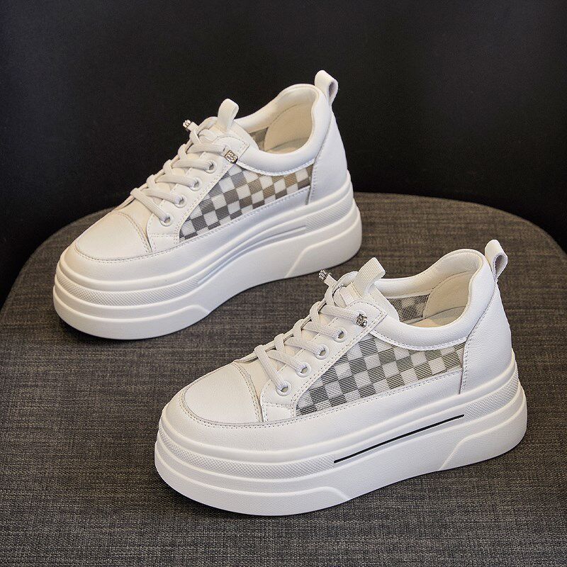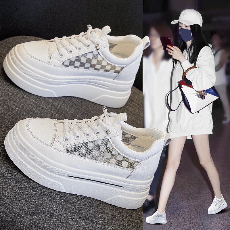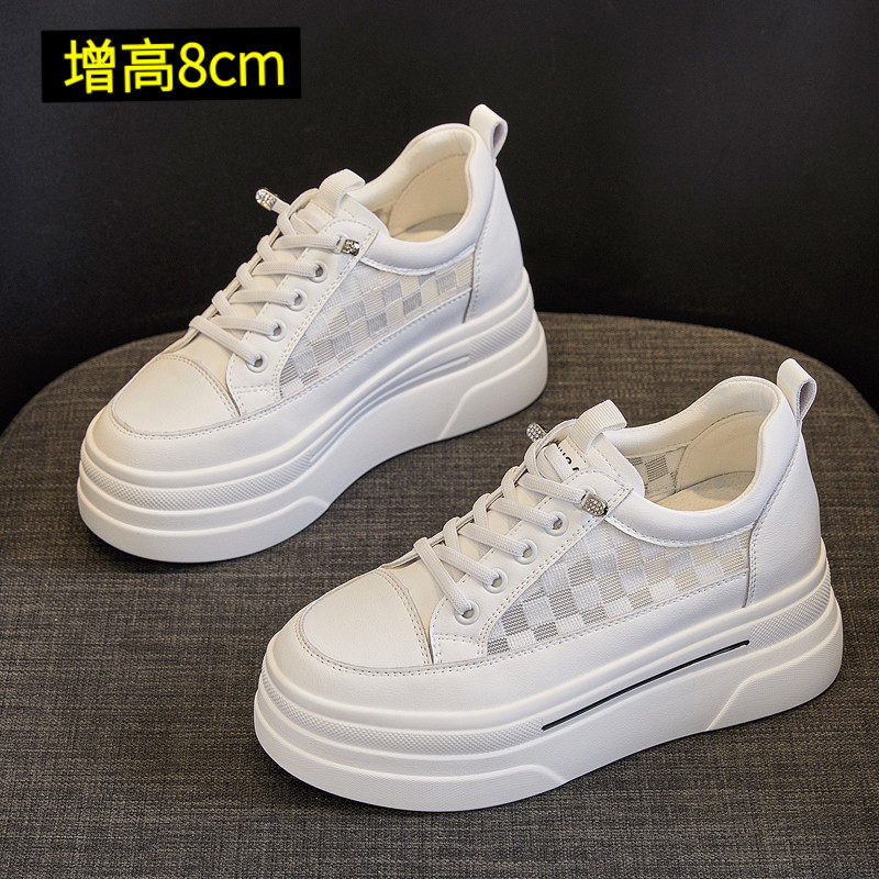 8cm内增高小白鞋女款夏季配裙子2024新款夏天一脚蹬厚底女鞋透气