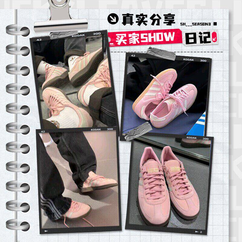 阿迪达斯三叶草粉色德训鞋2026春新款女士T头鞋运动鞋复古休闲鞋