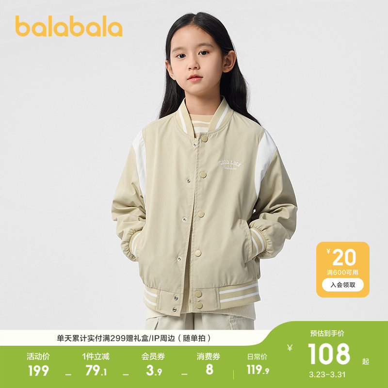 巴拉巴拉童装儿童外套男女童春装棒球服拼色绣花上衣百搭时尚潮