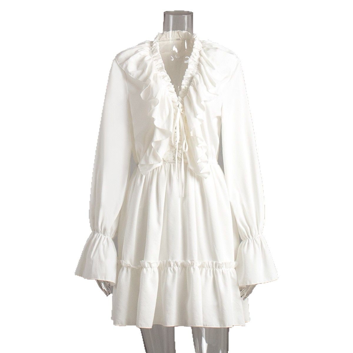 法式气质长袖宽松连衣裙女春夏款欧美外贸短款雪纺设计感收腰裙子
