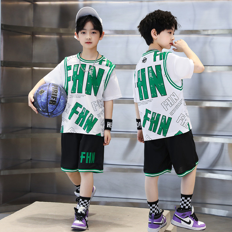 儿童运动套装2026夏季新款男童短袖篮球服速干背心T恤短裤两件套