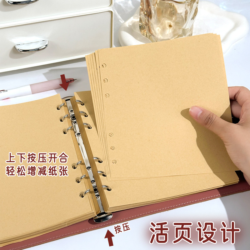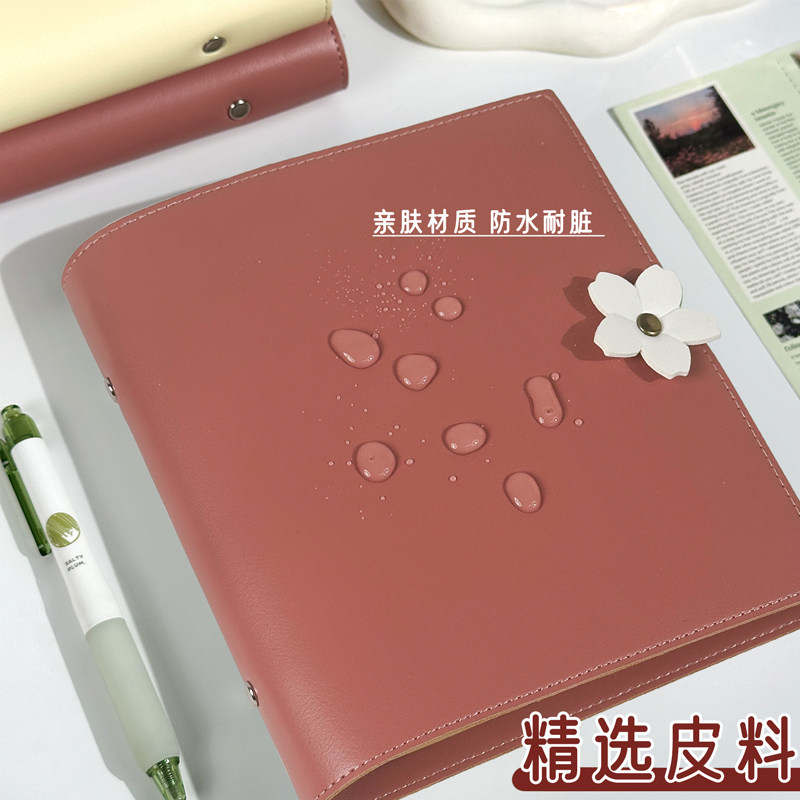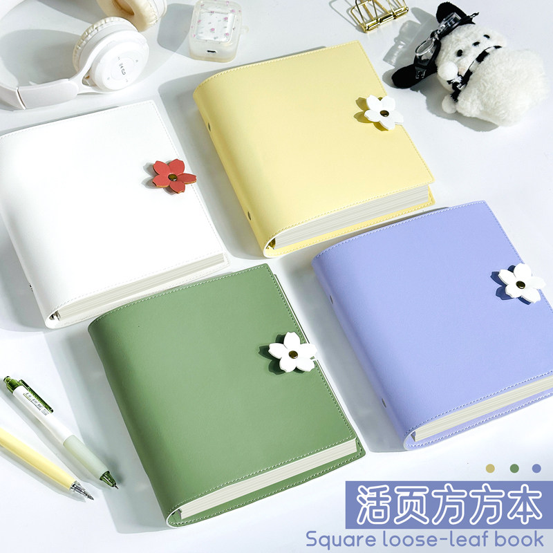 方形小花活页笔记本本子加厚不硌手手帐本高颜值软皮绳扣日记本旅行空白内页盖章本牛皮纸活页本横线记事本