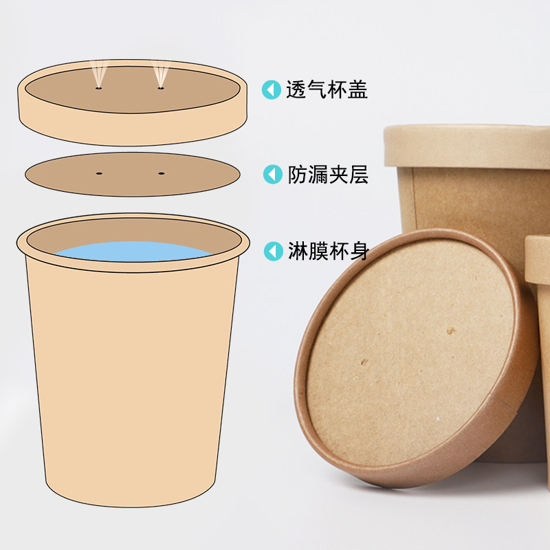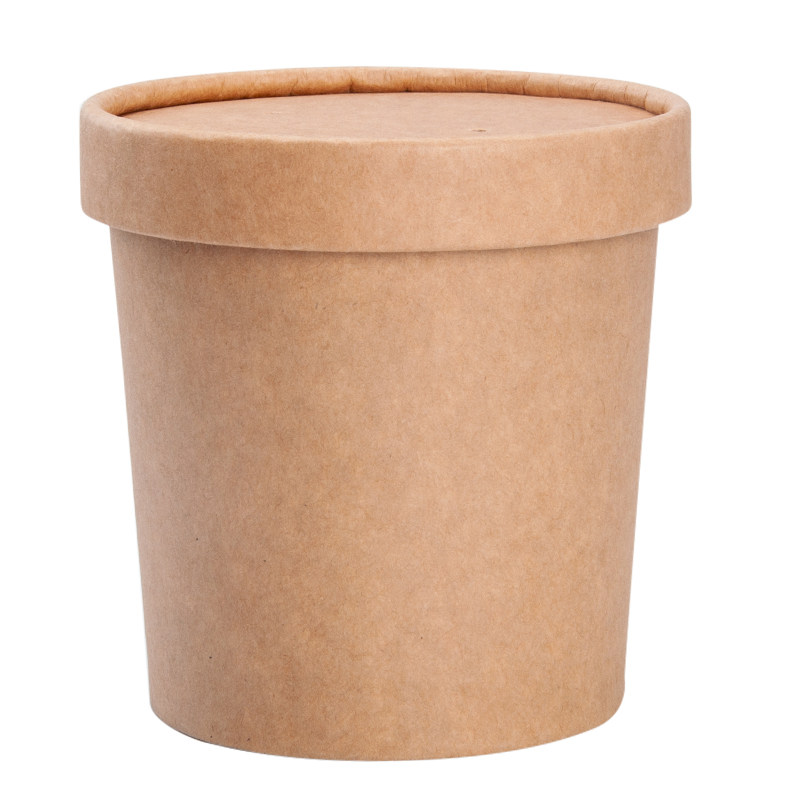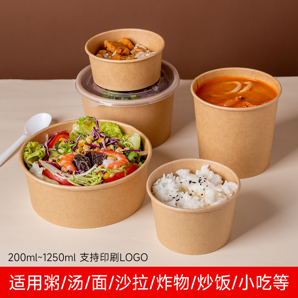 一次性牛皮纸汤桶圆形粥桶汤杯纸碗外卖带盖圆形打包盒商用纸盒