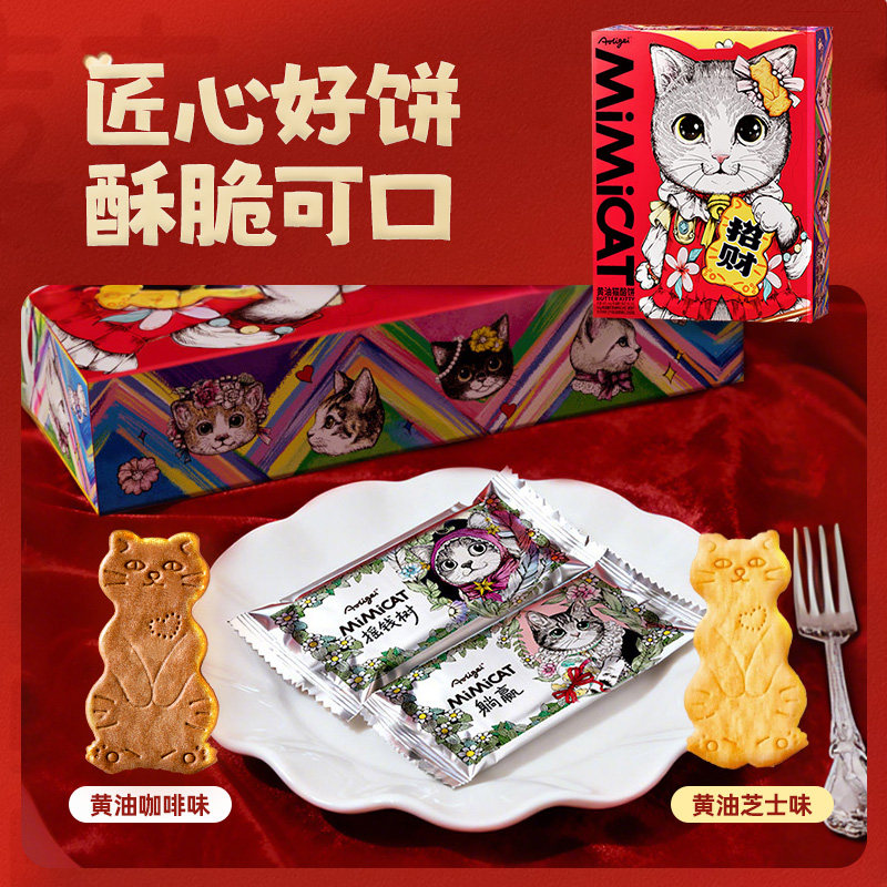 黄油猫酪曲奇饼干年货礼盒动物芝士薄脆过新年送礼儿童零食大礼包